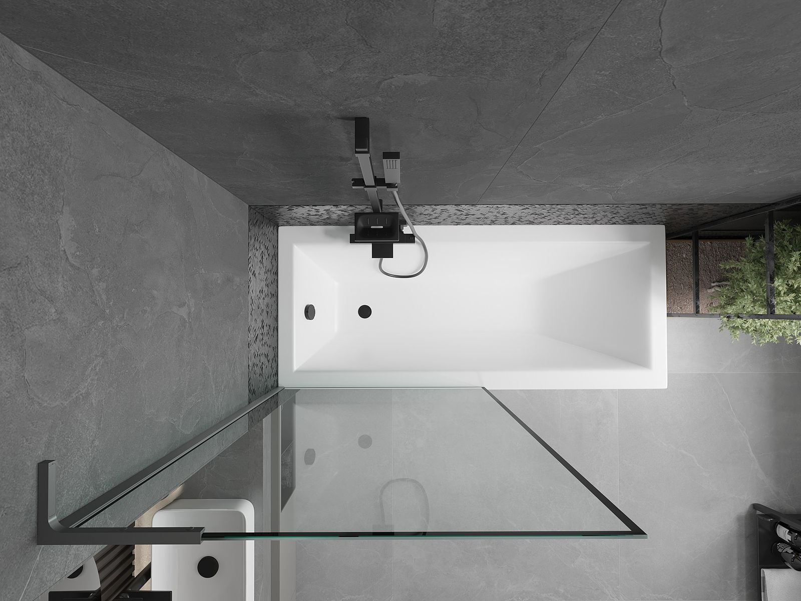 Mexen Next L vonios panelis, 1-duris 90 x 150 cm, juodas rėmelis, ginklų metalas - 895-090-000-03-70-95