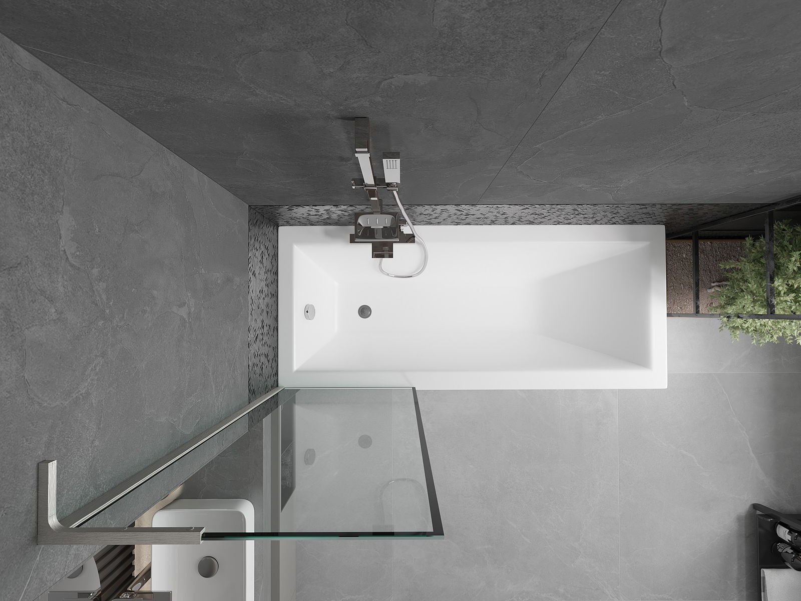 Mexen Next L vonios ekranas 1-duris 60 x 150 cm, juodas rėmelis, šlifuotas nikelis - 895-060-000-03-70-97