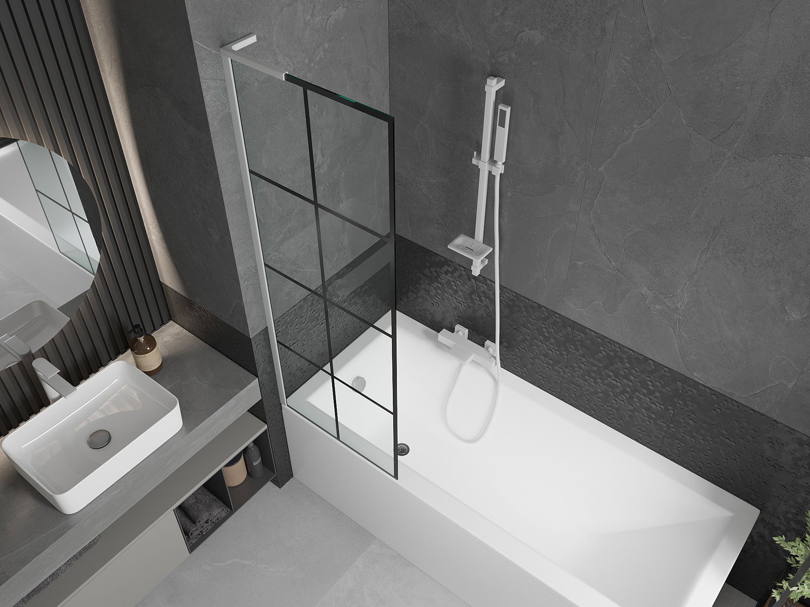 Mexen Next L vonios pertvara, 1 durys, 60 x 150 cm, juodas tinklelis, balta - 895-060-000-03-77-20