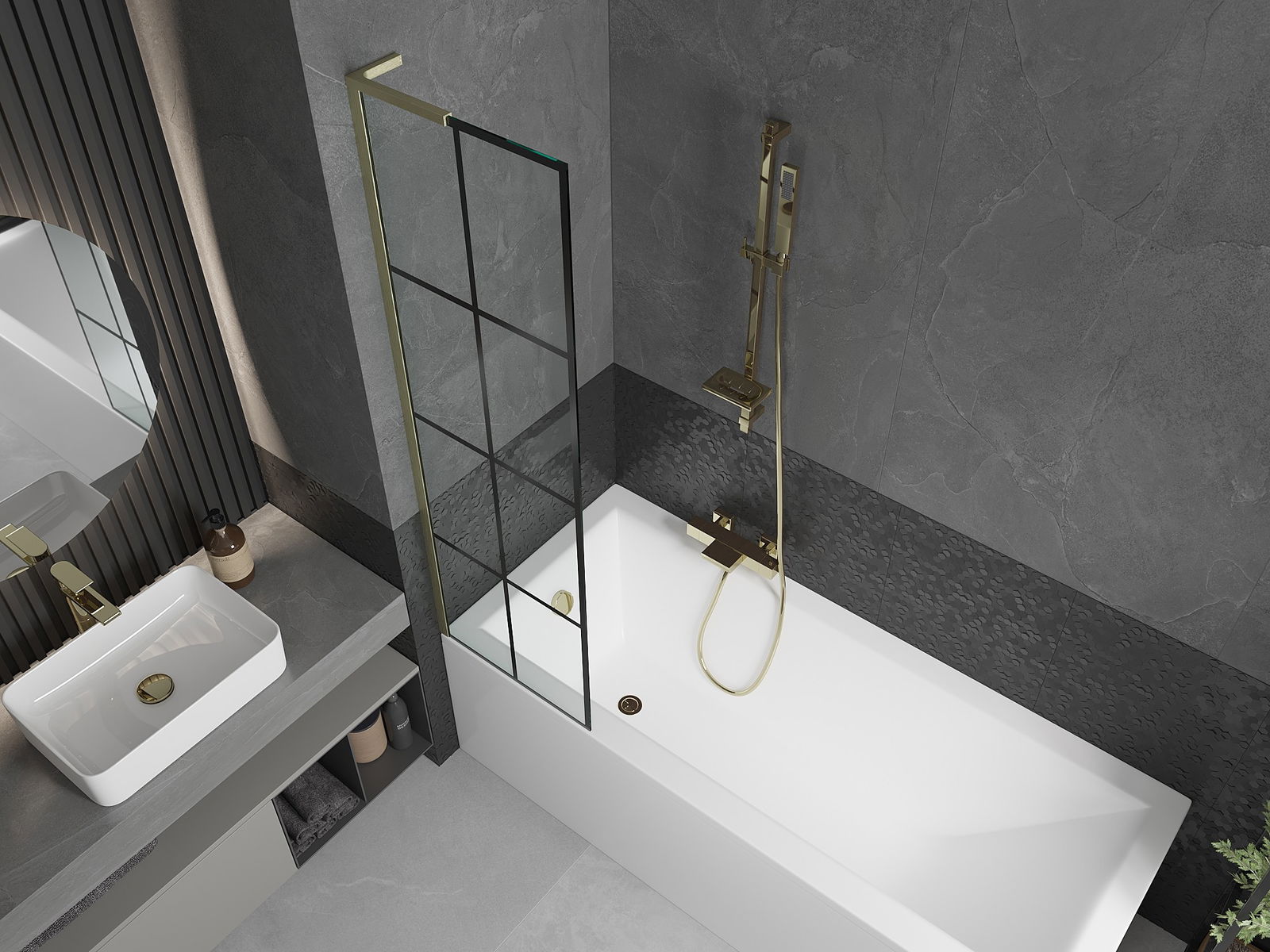 Mexen Next L vonios kambario sienelė 1-durų 50 x 150 cm, juodas tinklelis, auksinis šlifuotas - 895-050-000-03-77-55