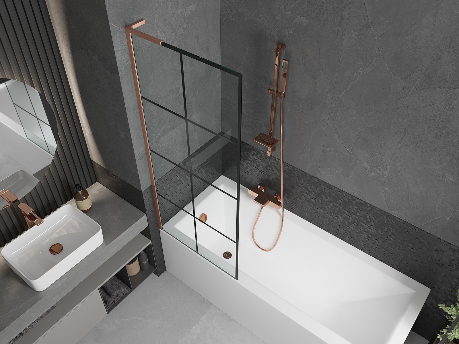 Efektyvi apsauga nuo vandens išsiliejimo maudymosi metu. Sienelė turi tarpines, kurios idealiai priglunda prie stiklo paviršiaus ir vonios krašto. Funkcionalus sprendimas, užtikrinantis saugumą ir lengvą švaros palaikymą.