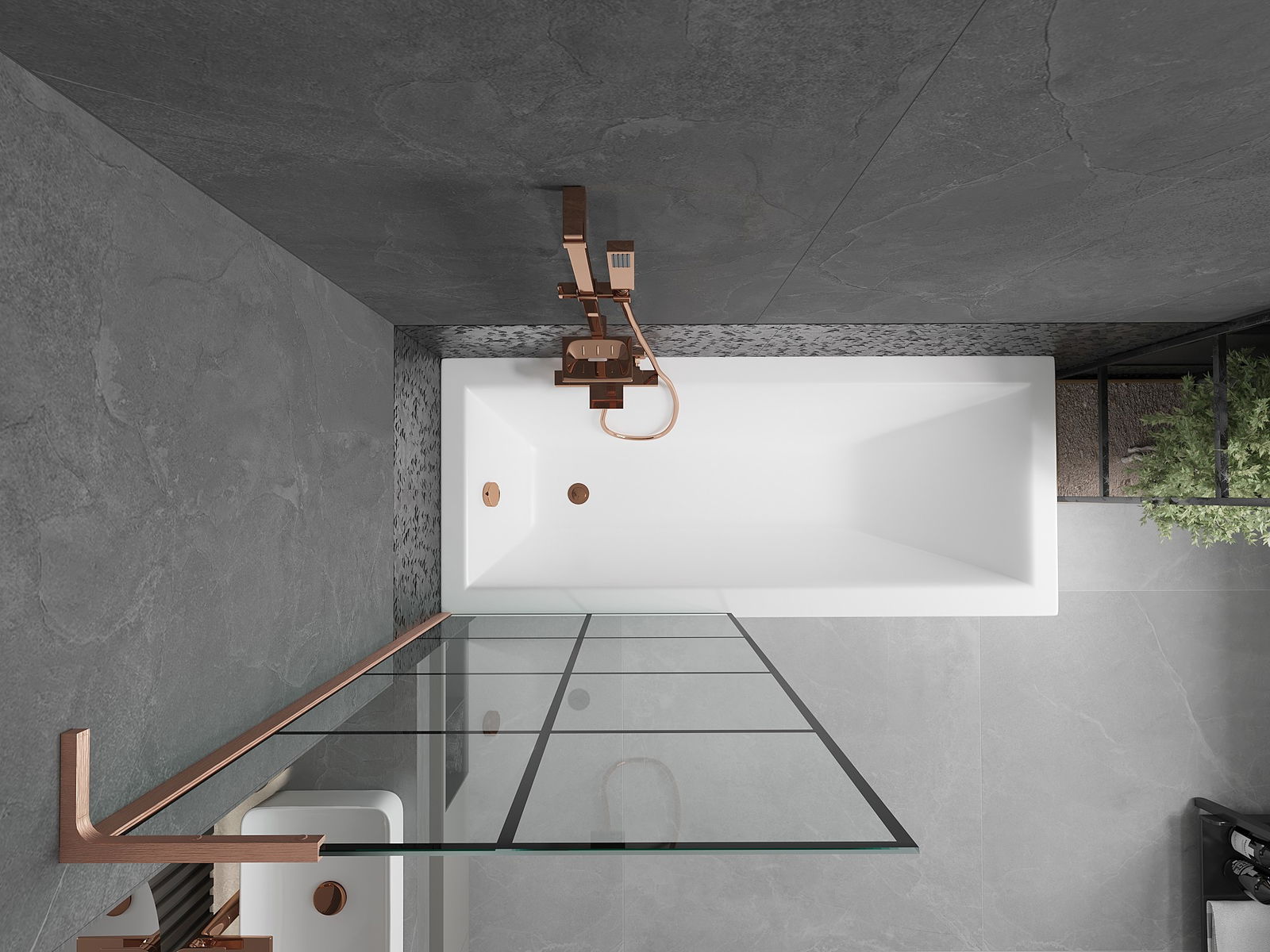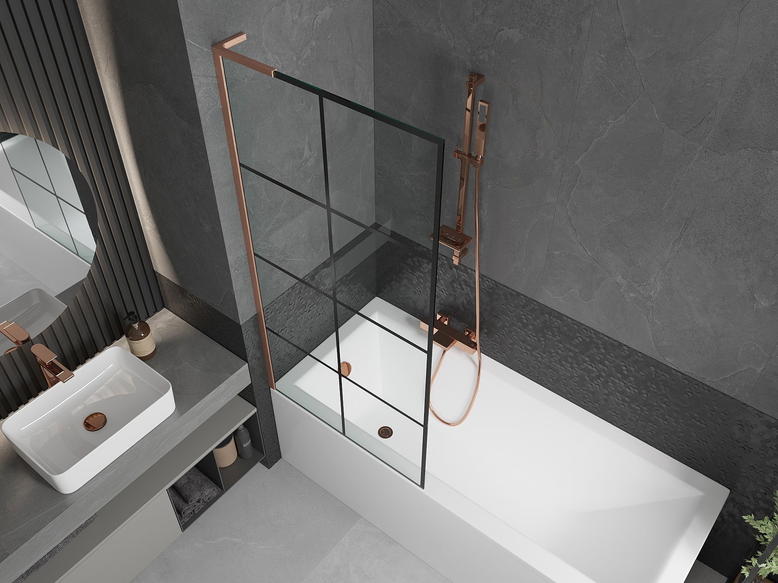 Mexen Next L vonios ekrano 1-jų durų 80 x 150 cm, juodas tinklas, šlifuotas varis - 895-080-000-03-77-65