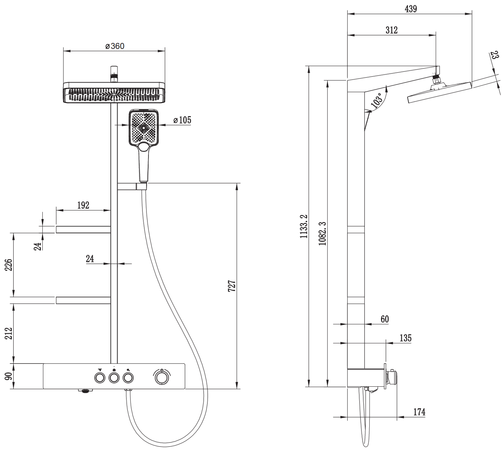 Lietaus dušo dydis: 230 x 360 mm