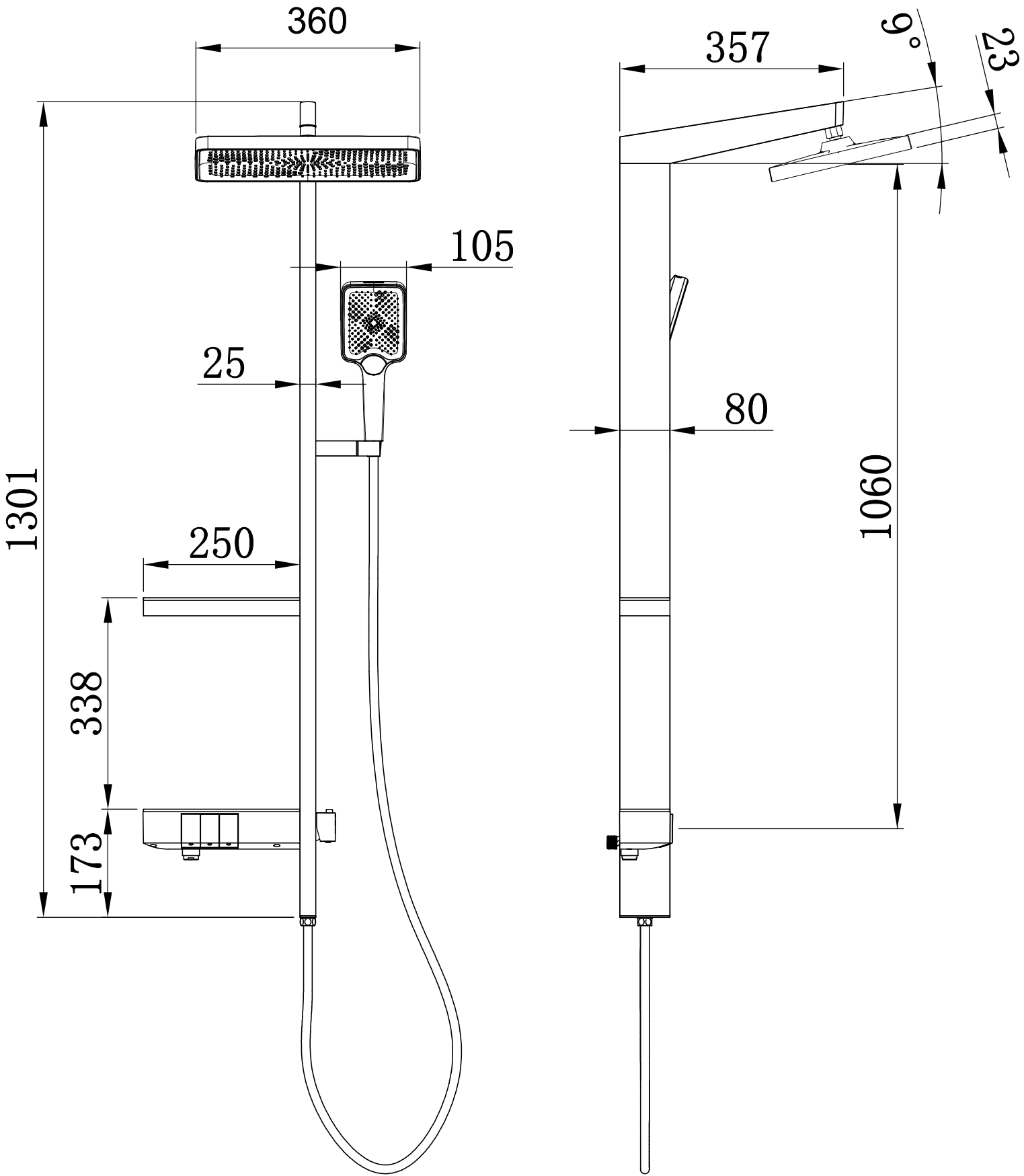 Lietaus dušo galvutės dydis: 230 x 360 mm