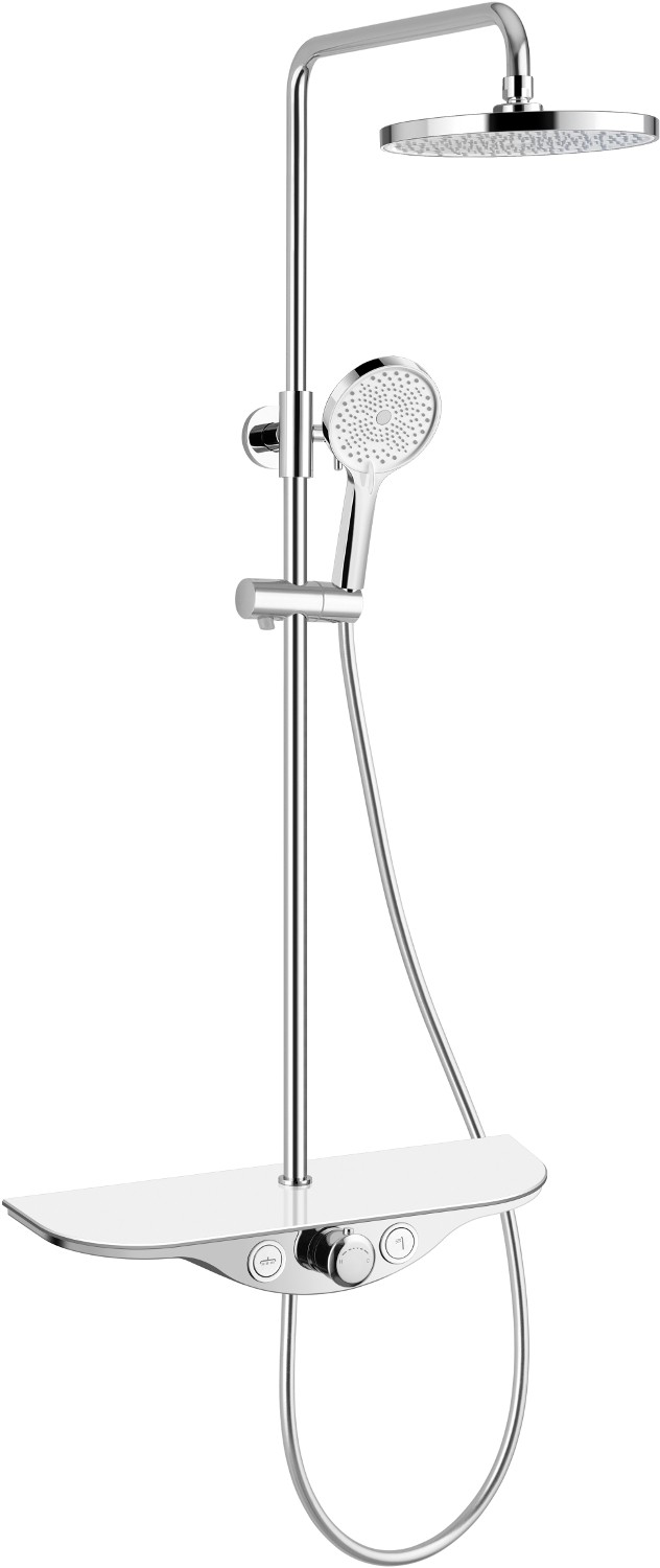 Dušo baterija su kosmetikos lentynėle yra funkcionalus sprendimas, kuris derina naudojimo patogumą su estetika. Lentynėlė leidžia laikyti kosmetiką, muilus, šampūnus ir kitus aksesuarus patogiai pasiekiamus maudynių metu.