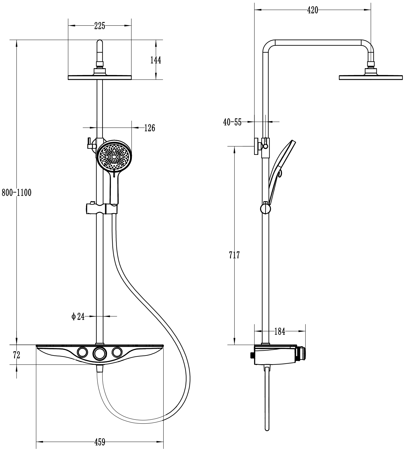 Aukštis: 800-1100 mm