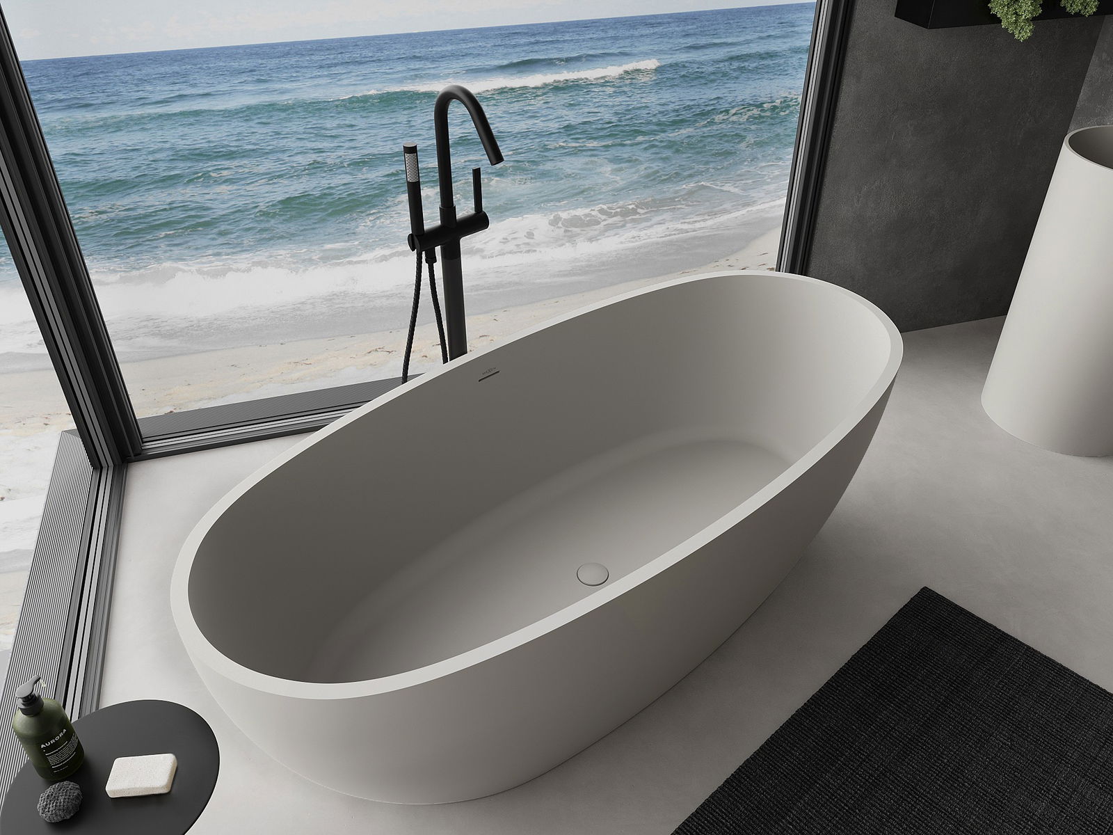 Mexen Torino laisvai stovinti vonia iš konglomerato 155 x 78 cm, matinis betoninis - 57271557861