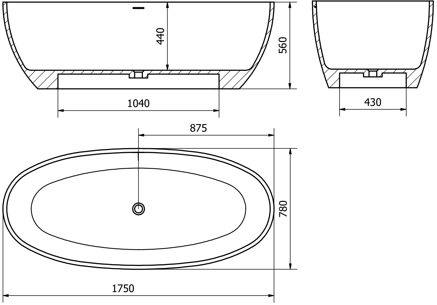 Mexen Torino laisvai pastatoma konglomerato vonia 175 x 78 cm, blizgi balta - 57271757810