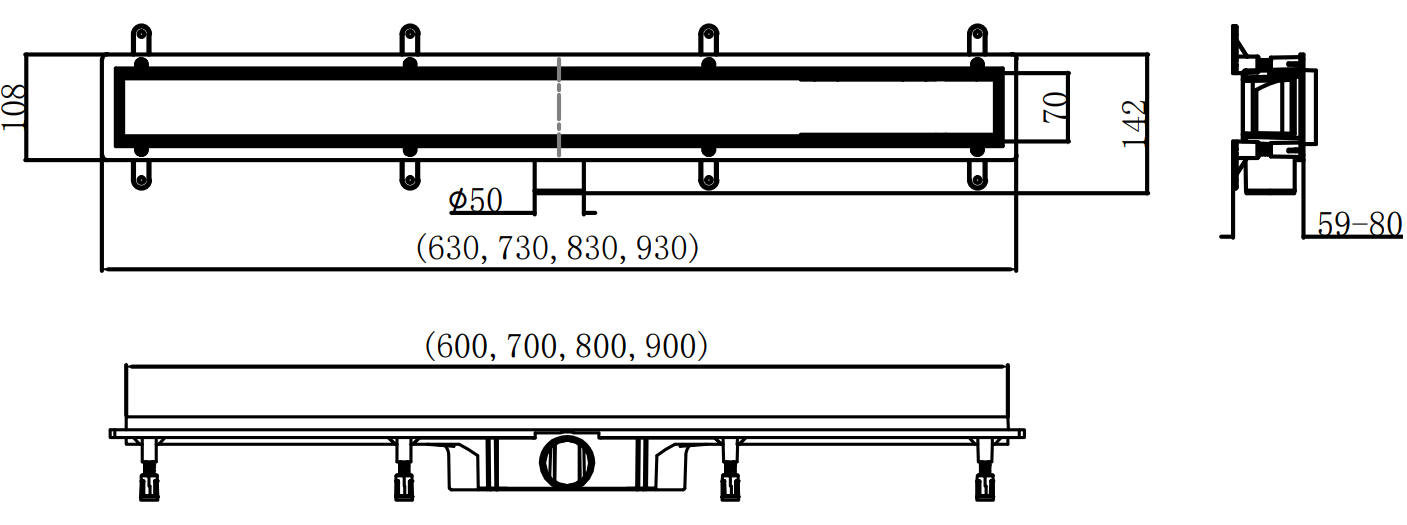 Nutekėjimas yra su reguliuojamomis kojomis, leidžiančiomis sureguliuoti tinkamą kanalizacijos aukštį ir lygį ant nelygaus paviršiaus. Tokiu būdu kanalizacija dar labiau tinka tam tikro vonios kambario sąlygoms.