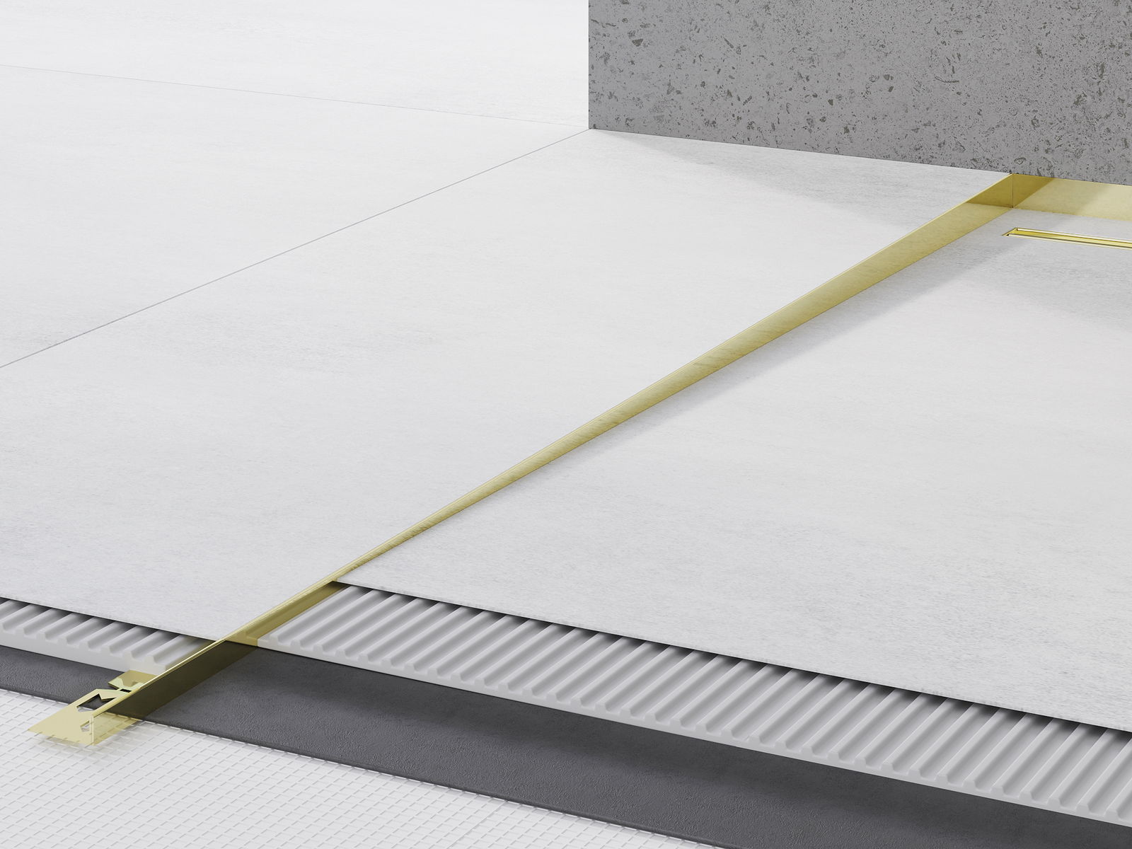 Nuolydžio juosta turi tiksliai nustatytą nuolydžio kampą, kuris efektyviai nukreipia vandenį link nutekėjimo, taip užkertant kelią jo susikaupimui ant grindų paviršiaus. Dėl to vanduo efektyviai nuteka, sumažinant balų atsiradimo riziką ir užtikrinant sausą bei saugų paviršių.