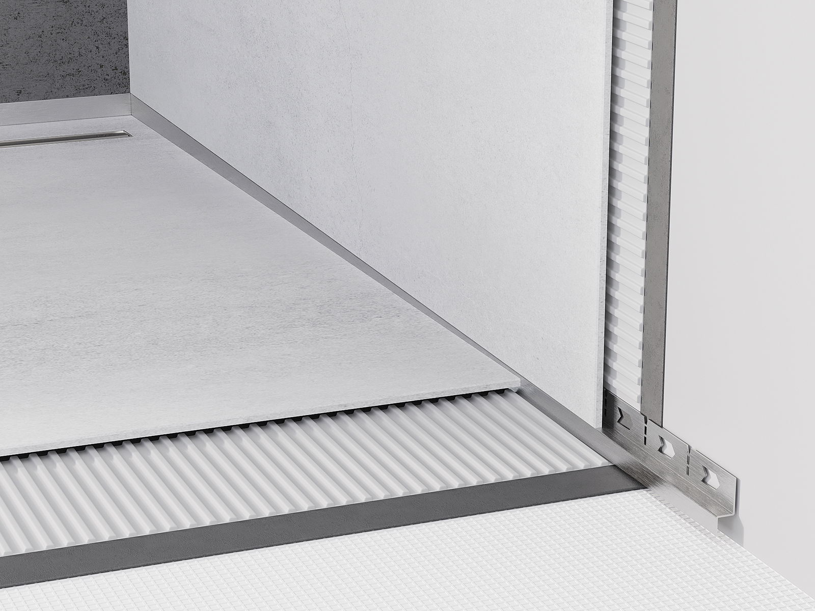Nuolydžio juosta turi tiksliai nustatytą nuolydžio kampą, kuris efektyviai nukreipia vandenį link nutekėjimo, taip užkertant kelią jo susikaupimui ant grindų paviršiaus. Dėl to vanduo efektyviai nuteka, sumažinant balų atsiradimo riziką ir užtikrinant sausą bei saugų paviršių.