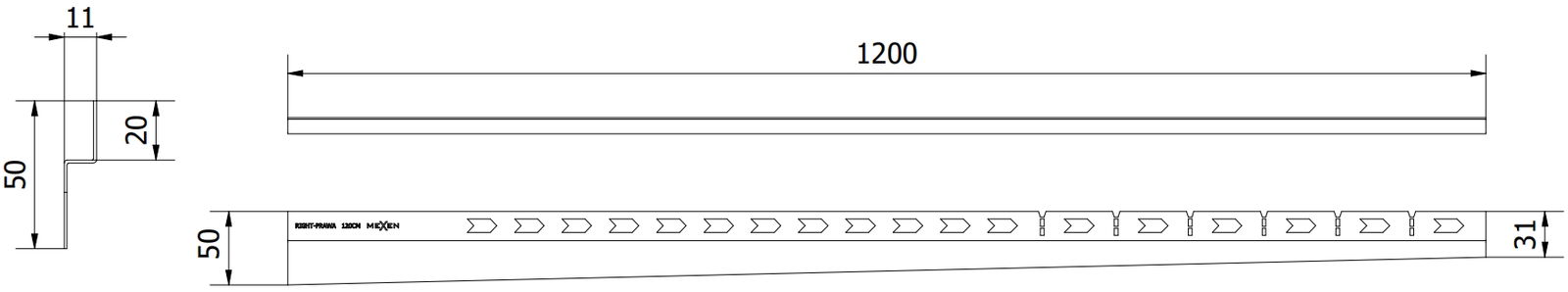 Nuolydžio juosta turi tiksliai nustatytą nuolydžio kampą, kuris efektyviai nukreipia vandenį link nutekėjimo, taip užkertant kelią jo susikaupimui ant grindų paviršiaus. Dėl to vanduo efektyviai nuteka, sumažinant balų atsiradimo riziką ir užtikrinant sausą bei saugų paviršių.