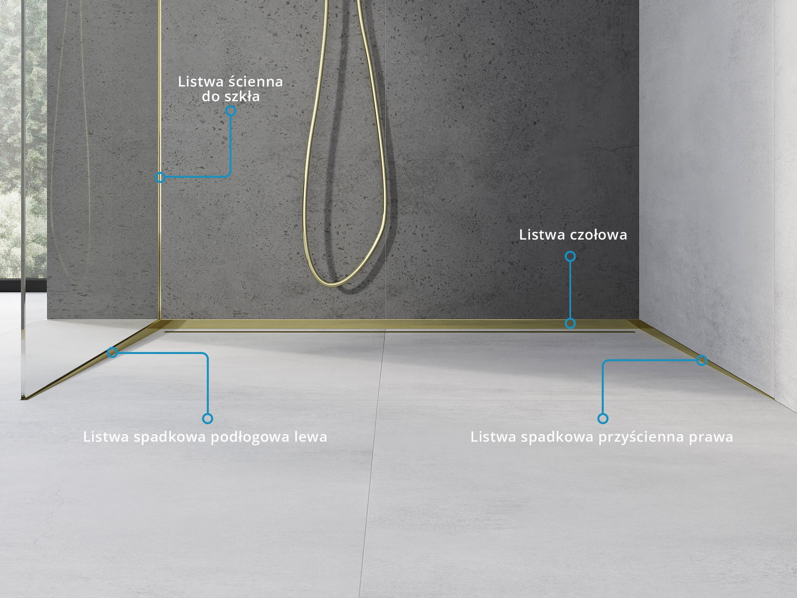 Mexen Line-B 180 cm dešinysis kampinis nuolydžio profilis, auksinis - 185002180R