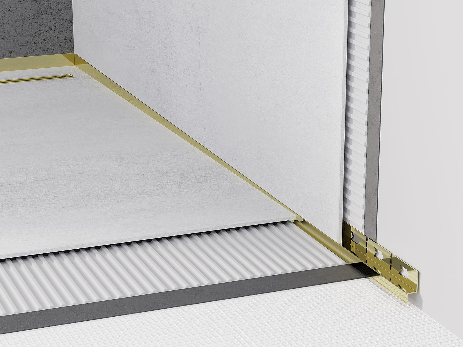 Nuolydžio juosta turi tiksliai nustatytą nuolydžio kampą, kuris efektyviai nukreipia vandenį link nutekėjimo, taip užkertant kelią jo susikaupimui ant grindų paviršiaus. Dėl to vanduo efektyviai nuteka, sumažinant balų atsiradimo riziką ir užtikrinant sausą bei saugų paviršių.