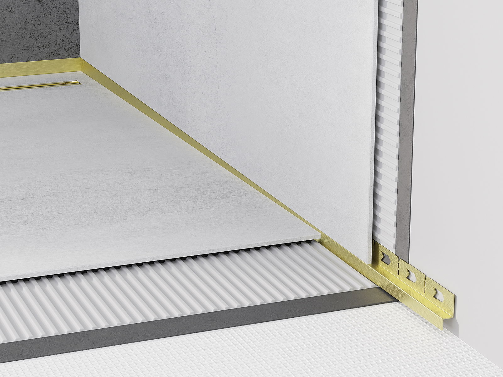 Maskuoja negražią plytelių pabaigą ir apsaugo nuo vandens prasiskverbimo po plytelėmis