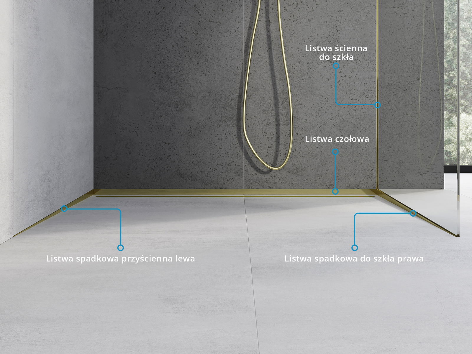 Priekinė kraštinė yra papildymas naudojant nuolydžio juostas, sukuriant vientisą visumą dušo erdvėje