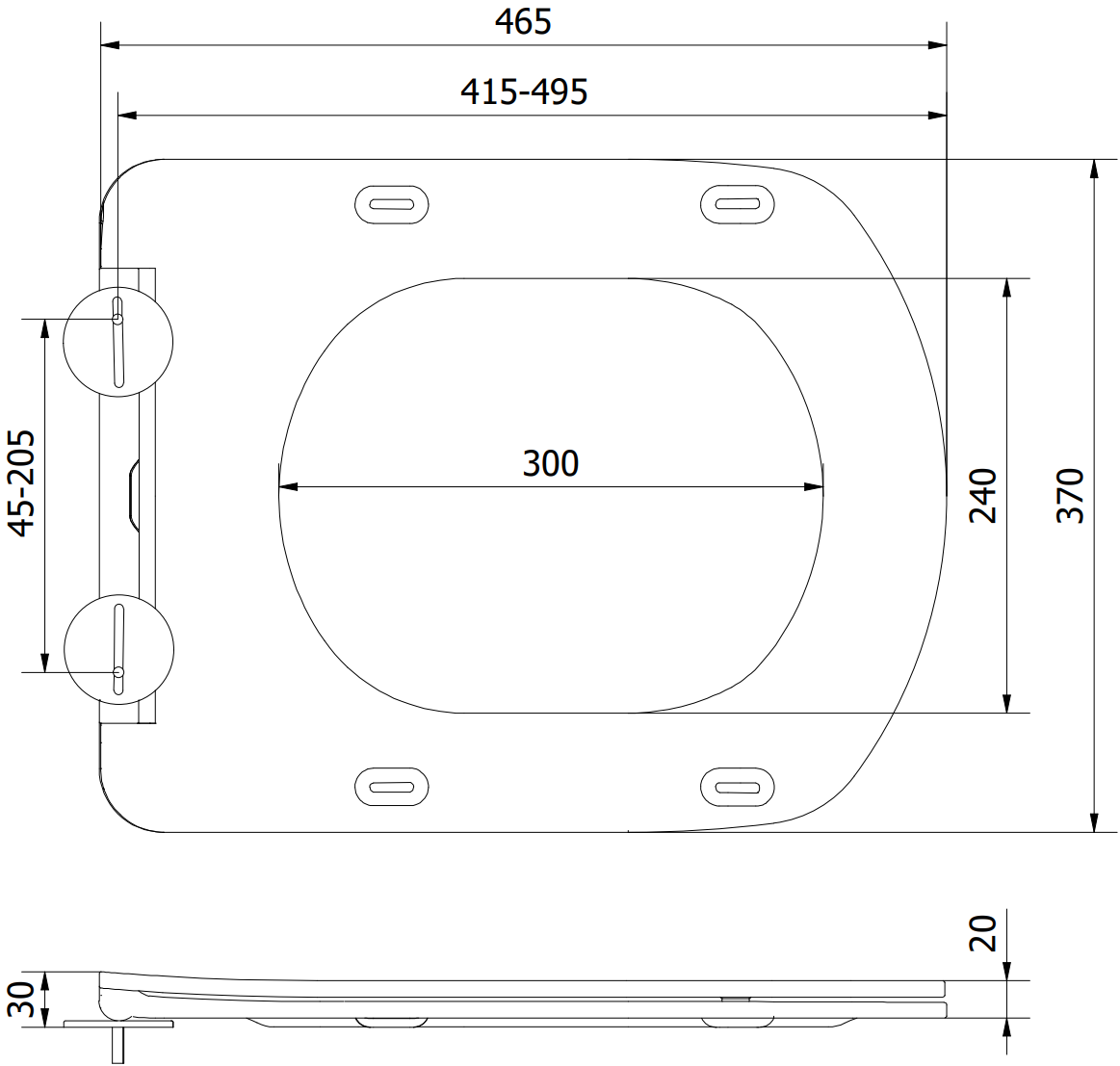 Komplekte yra tvirti metaliniai vyriai, kurie užtikrina stabilų dangčio pritvirtinimą prie WC lėkštės. Tai praktiškas sprendimas, leidžiantis lengvai pritaikyti dangtį prie tualeto formos ir matmenų, užtikrinant naudojimo patogumą.