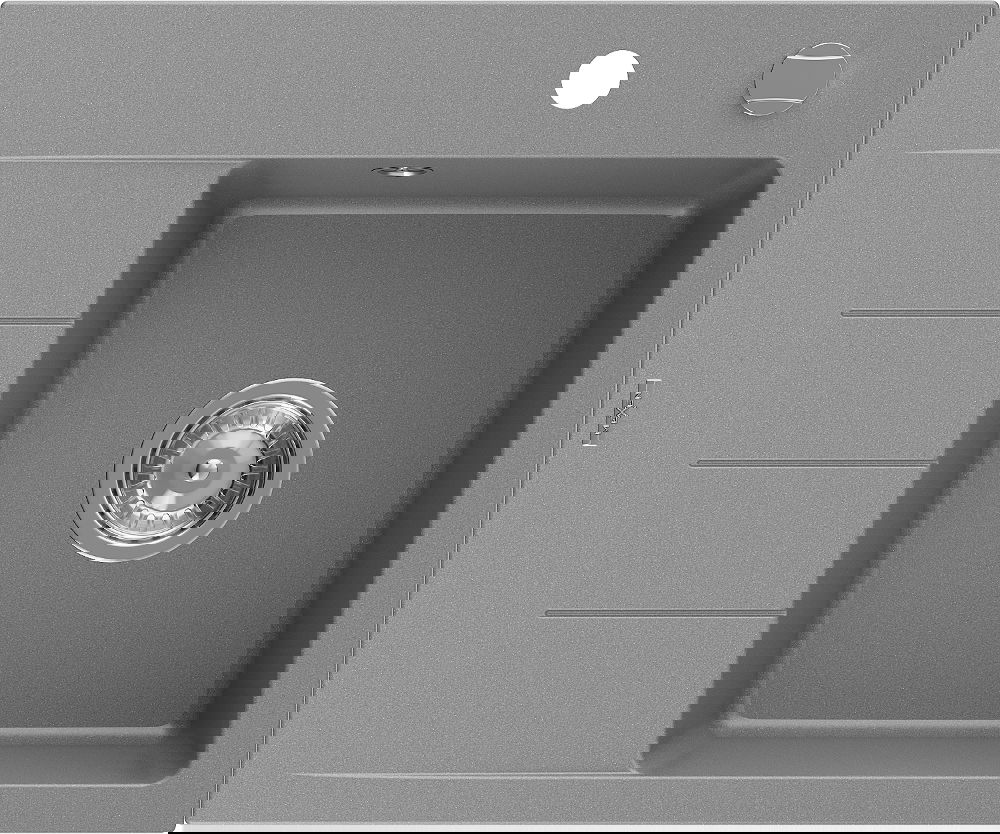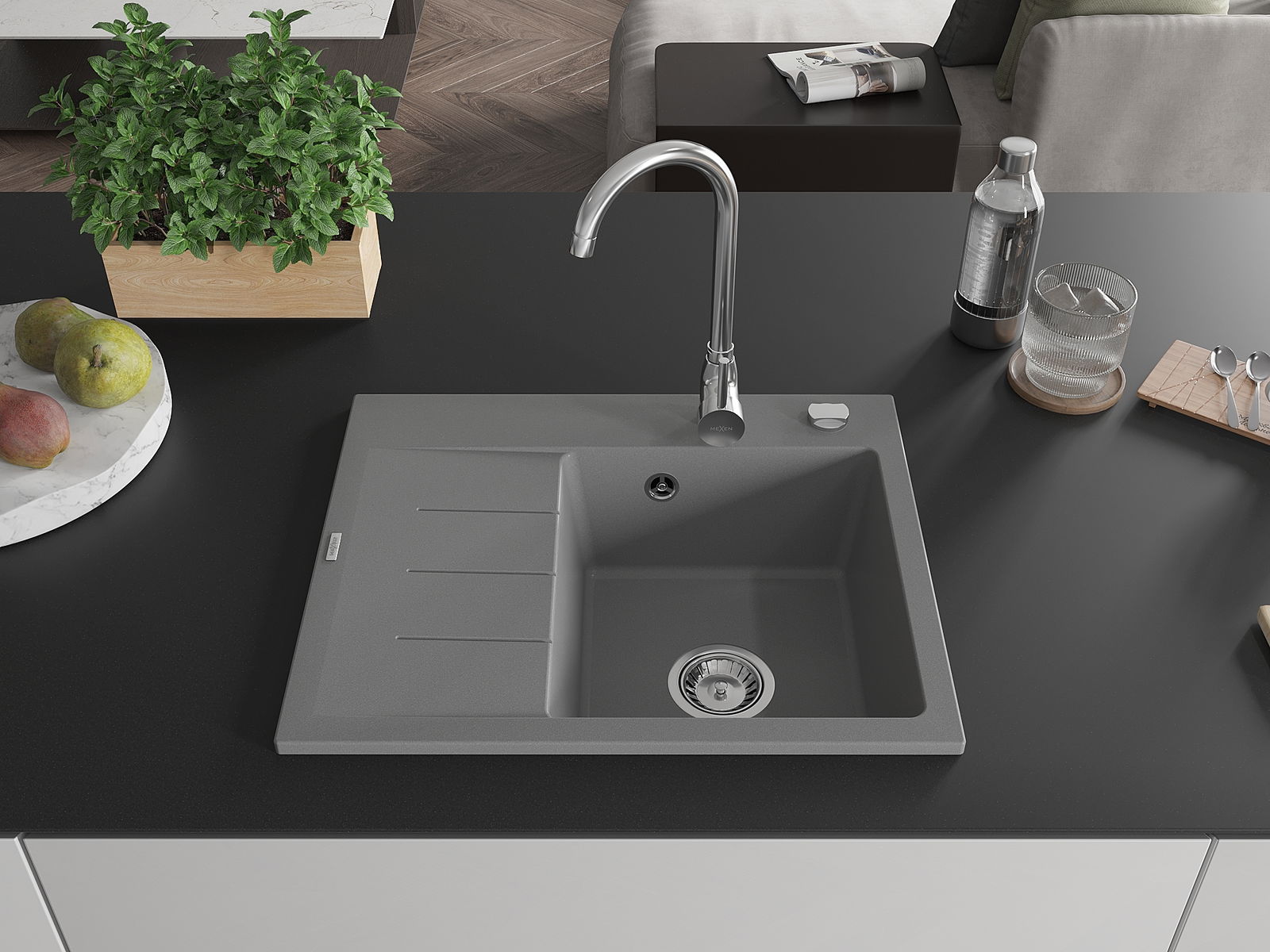 Mexen Ben granitinė vienašlysė kriauklė su nusausintuvu, dešinė, 600 x 500 mm, pilka, chromuotas sifonas - 6523605000-71