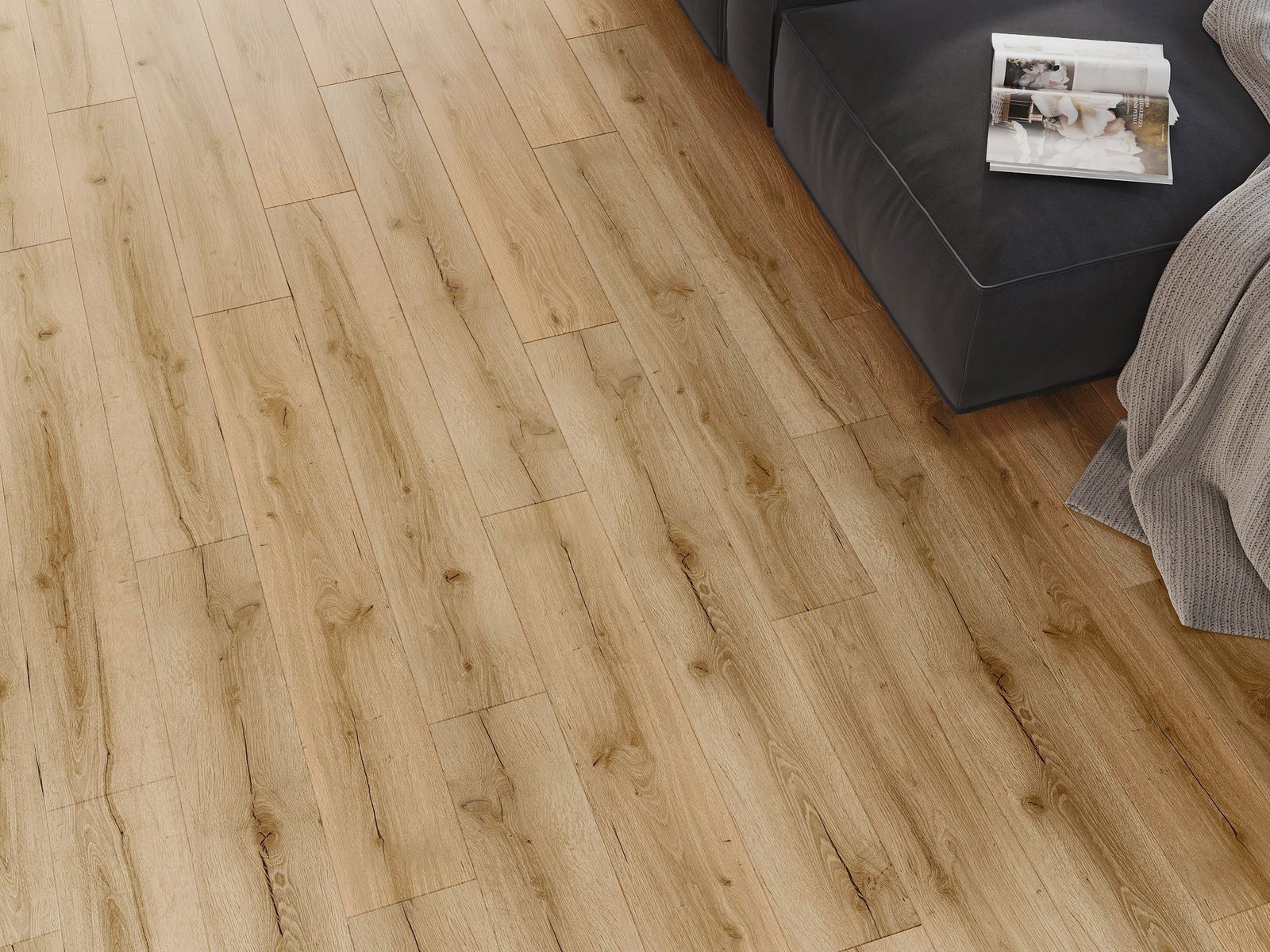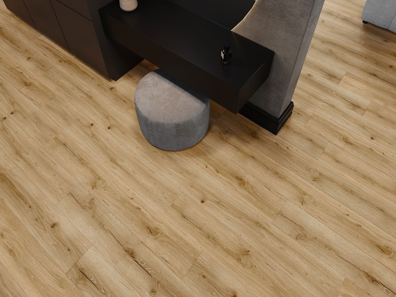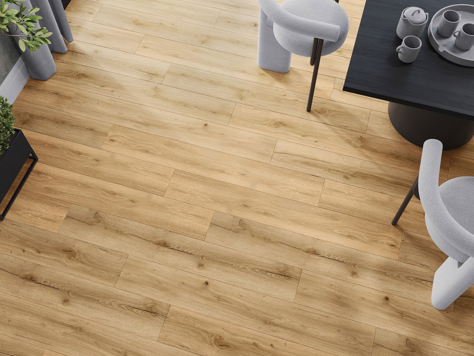 Skydas išsiskiria subtiliais raštais ir įspaudais, kurie puikiai imituoja pasirinktos medienos rūšį. Dėl šio efekto patalpa įgyja elegantišką, o tuo pačiu natūralų ir jaukų pobūdį.