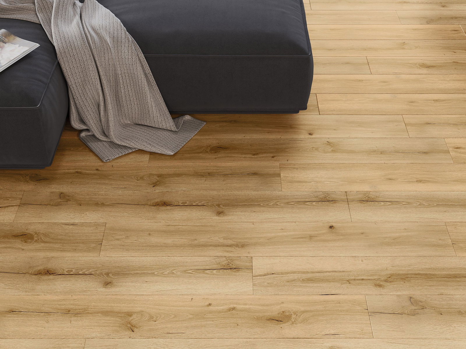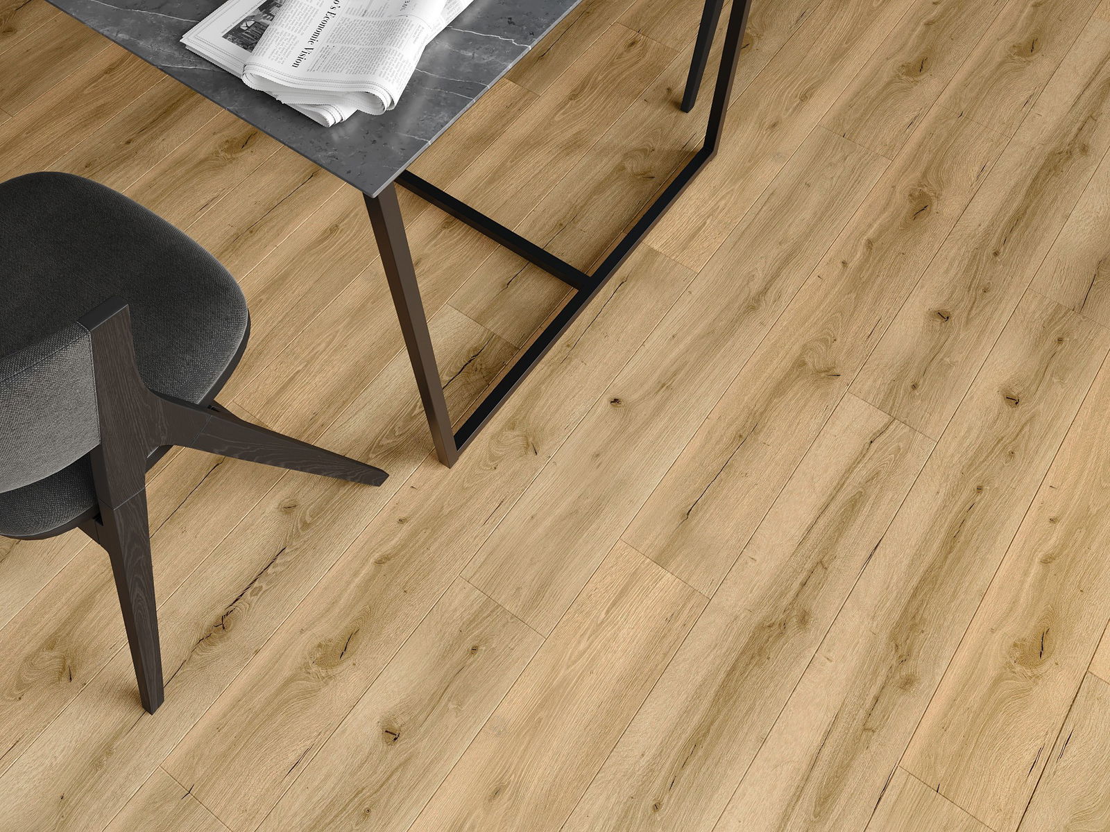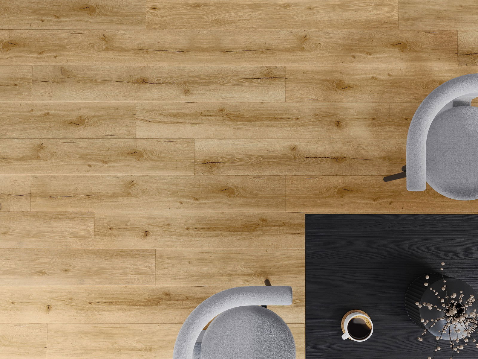 Skydas išsiskiria subtiliais raštais ir įspaudais, kurie puikiai imituoja pasirinktos medienos rūšį. Dėl šio efekto patalpa įgyja elegantišką, o tuo pačiu natūralų ir jaukų pobūdį.