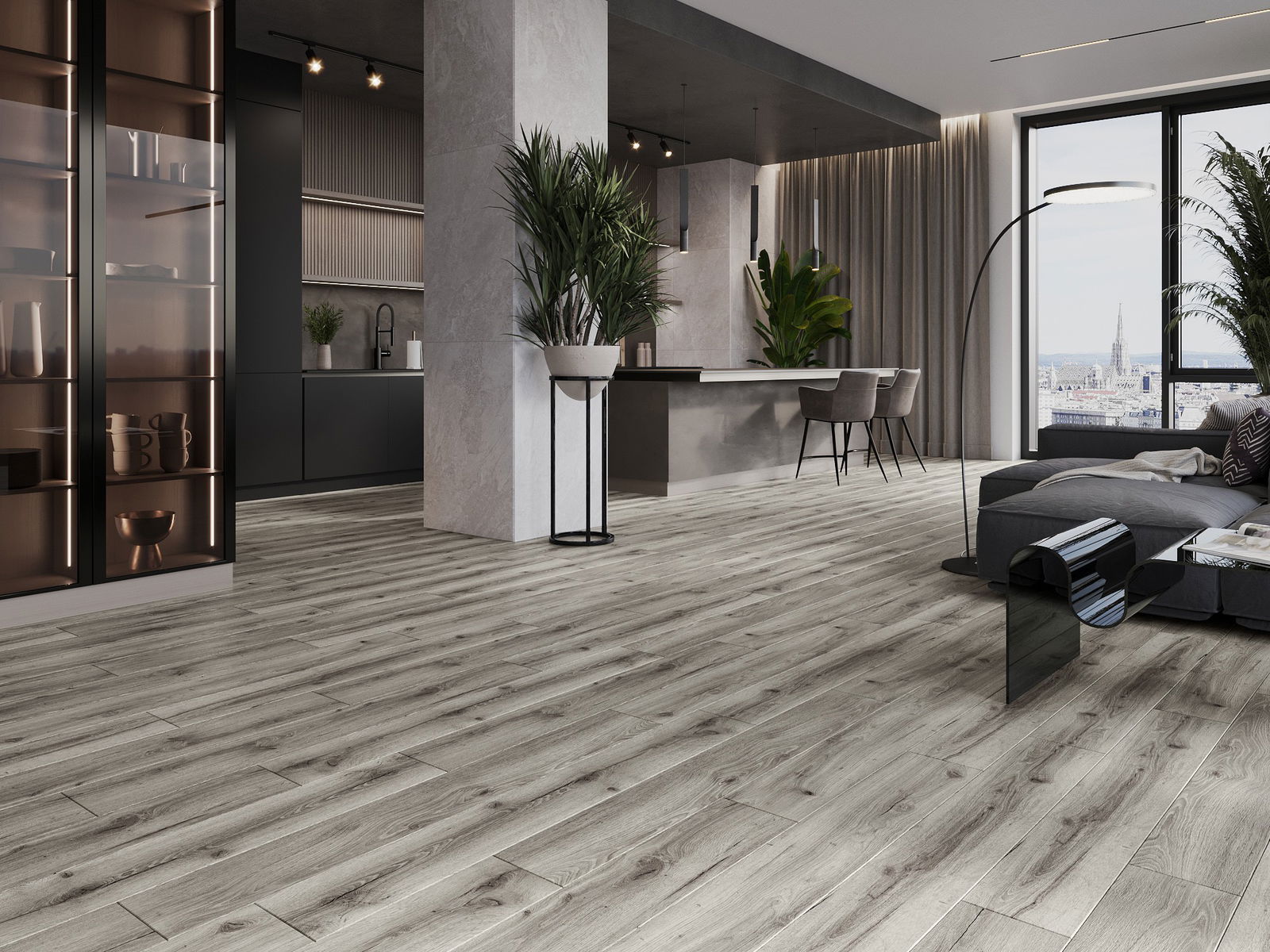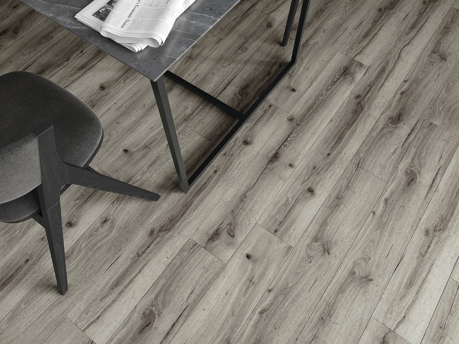 Skydas išsiskiria subtiliais raštais ir įspaudais, kurie puikiai imituoja pasirinktos medienos rūšį. Dėl šio efekto patalpa įgyja elegantišką, o tuo pačiu natūralų ir jaukų pobūdį.
