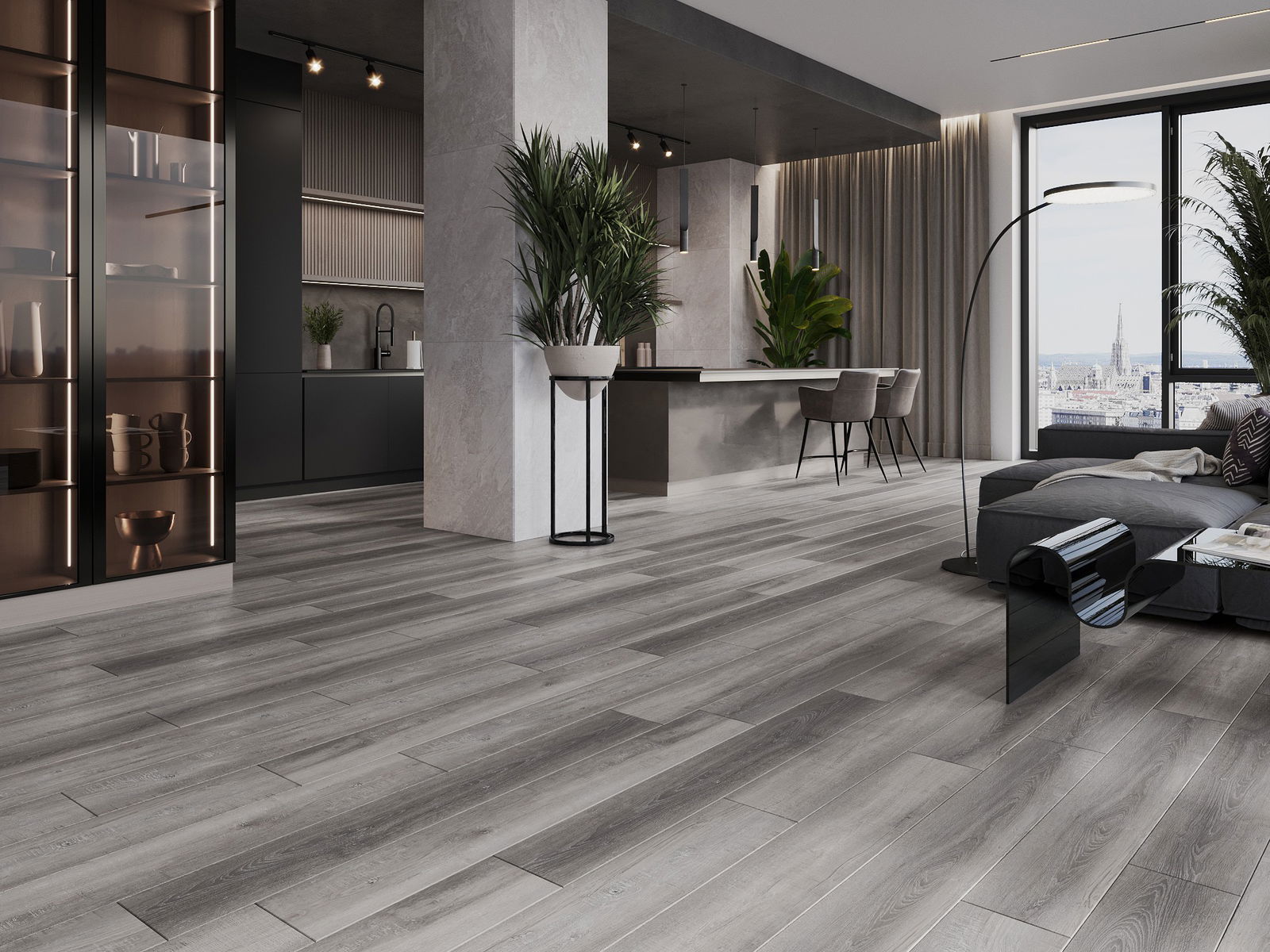 Skydas išsiskiria subtiliais raštais ir įspaudais, kurie puikiai imituoja pasirinktos medienos rūšį. Dėl šio efekto patalpa įgyja elegantišką, o tuo pačiu natūralų ir jaukų pobūdį.