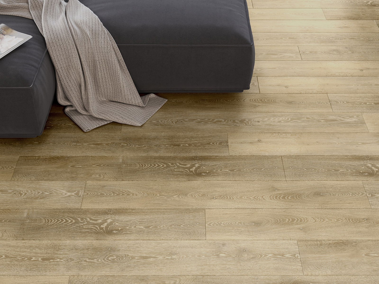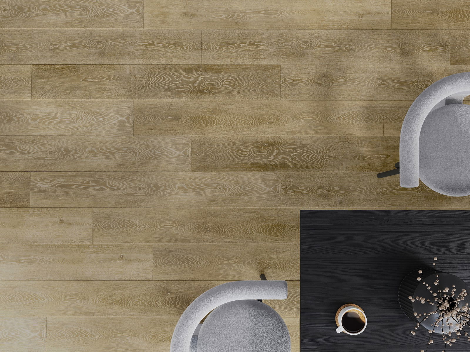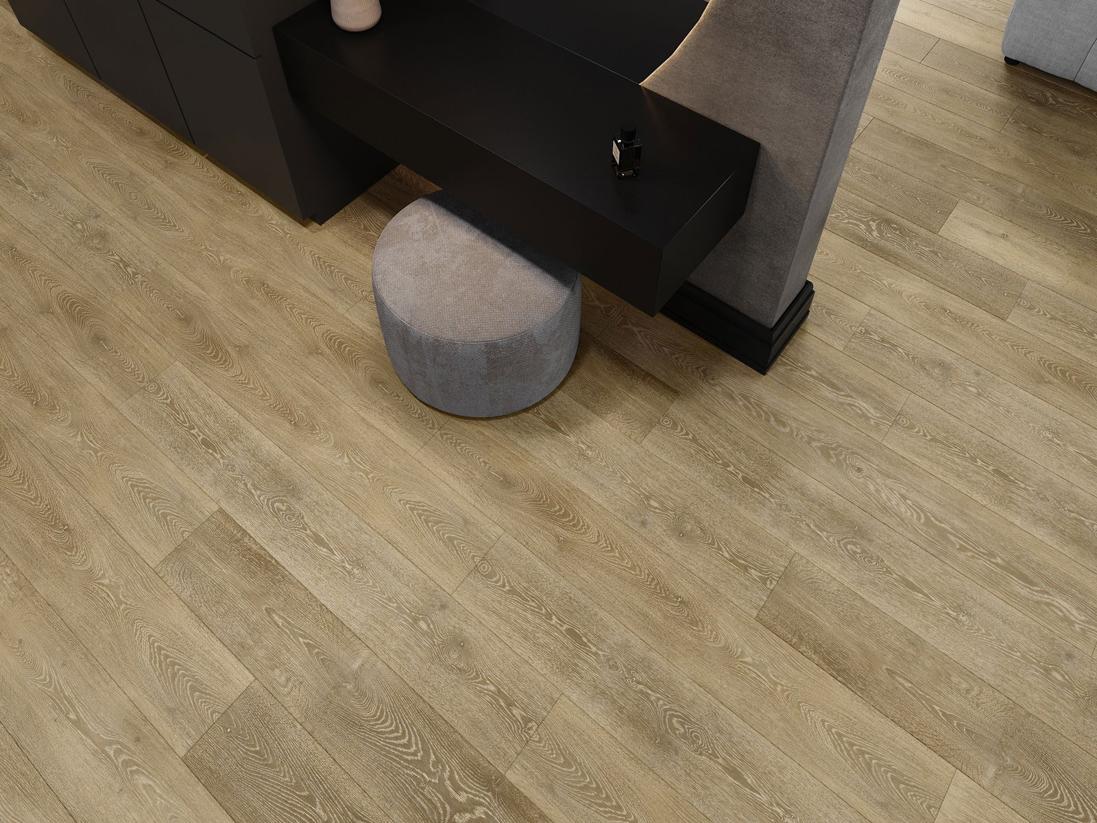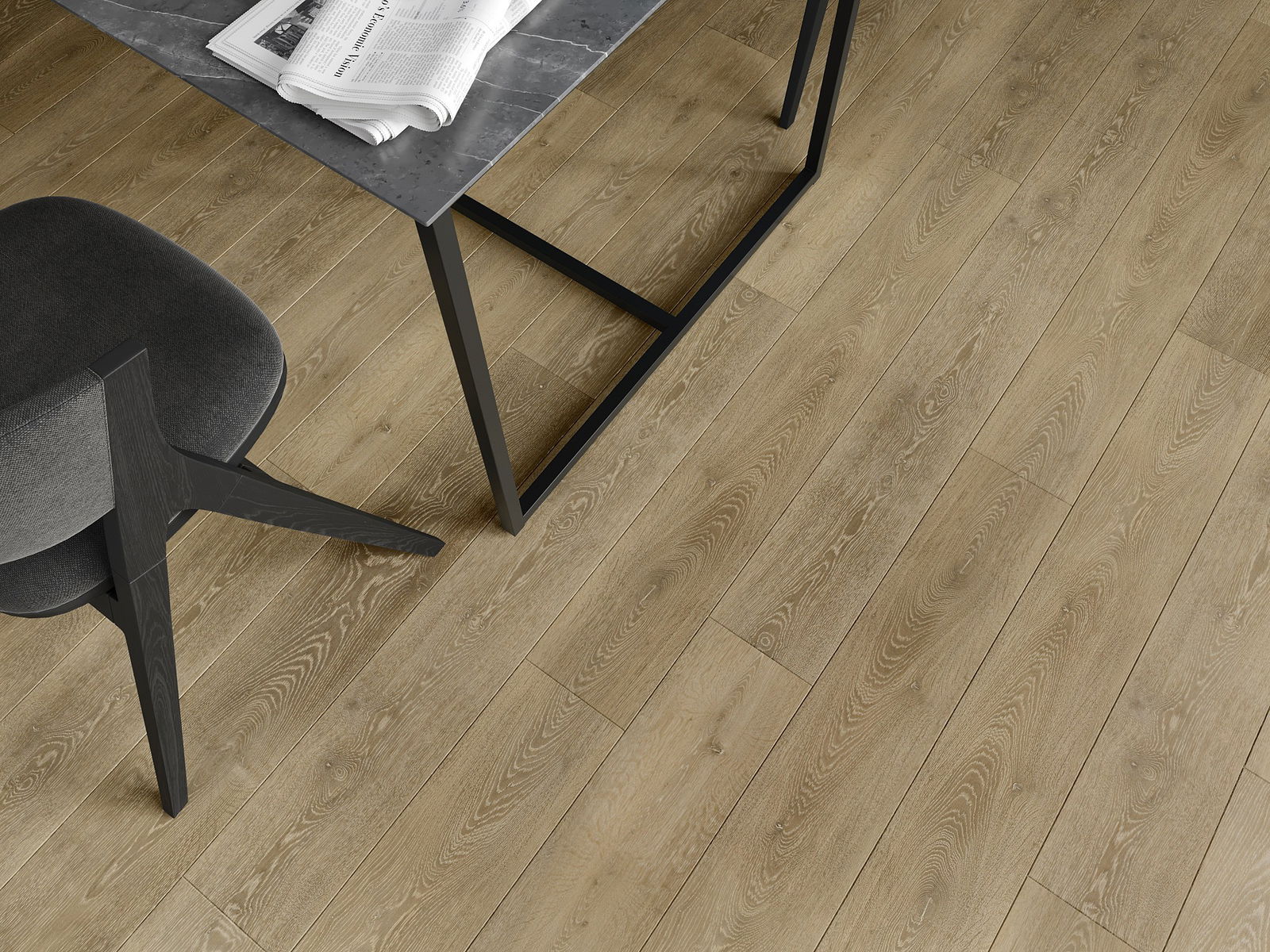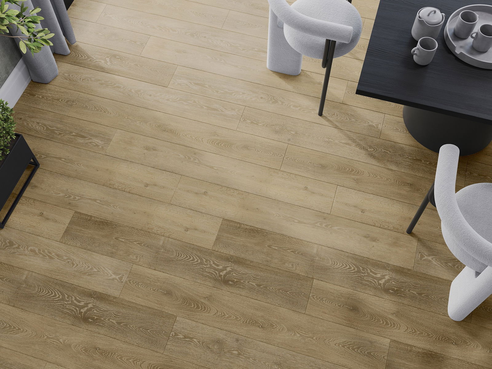 Skydas išsiskiria subtiliais raštais ir įspaudais, kurie puikiai imituoja pasirinktos medienos rūšį. Dėl šio efekto patalpa įgyja elegantišką, o tuo pačiu natūralų ir jaukų pobūdį.