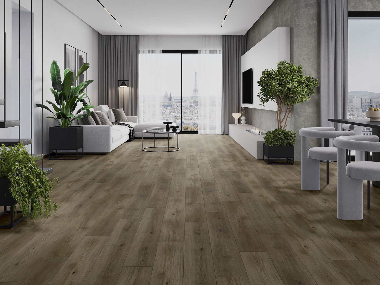 Skydas išsiskiria subtiliais raštais ir įspaudais, kurie puikiai imituoja pasirinktos medienos rūšį. Dėl šio efekto patalpa įgyja elegantišką, o tuo pačiu natūralų ir jaukų pobūdį.