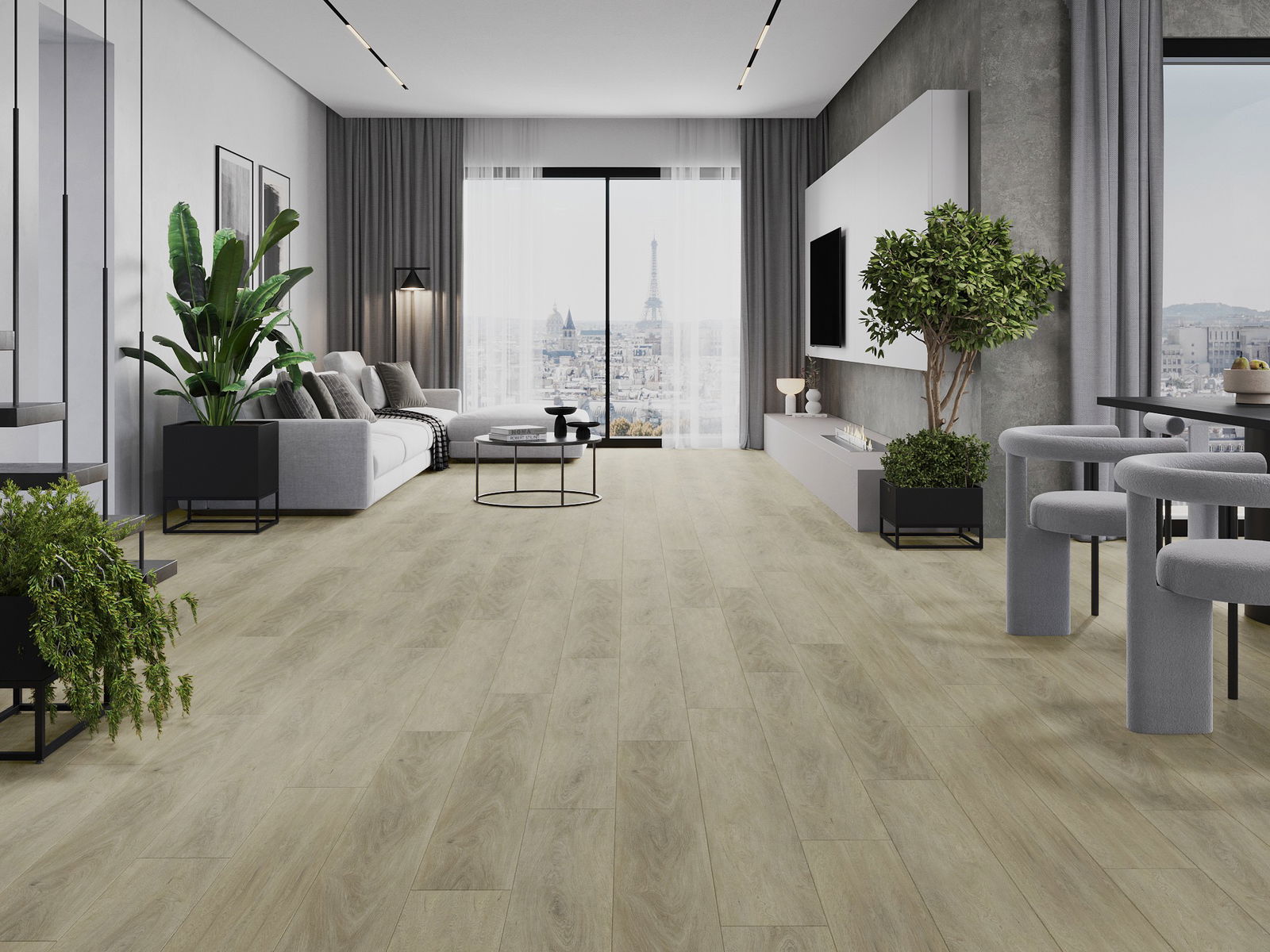 Vinilinės plokštės pavyzdys yra idealus sprendimas interjero dizainui. Dėl išmatavimų 1240 x 182 mm ir 6,5 mm storio, integruotas IXPE pagrindas užtikrina papildomą komfortą ir izoliaciją. Produktas pasižymi 100% atsparumu vandeniui, todėl jis idealiai tinka vietoms, kuriose yra drėgmės. Lengva montuoti dėl Uniclick 2G technologijos, su 4 pusių V-Fuga ir antislidinimo klase DS, puikiai tinka įvairioms patalpoms, įskaitant kartu su žematemperatūriniu grindų šildymu.