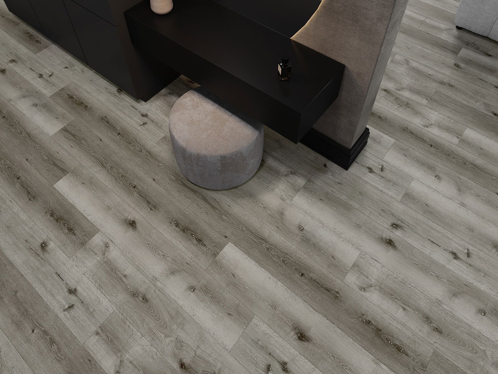 Plokštės turi 4-krypčių griovelį - kiekviena pusė buvo frezuota taip, kad sudarytų V formos jungtį. Toks dizainas suteikia grindims ryškesnę struktūrą, kas suteikia jai gylio ir estetinį charakterį. Šis efektas ypač vertinamas šiuolaikinėse aranžuotėse, kur detalės pabrėžia išskirtinę interjero išvaizdą.