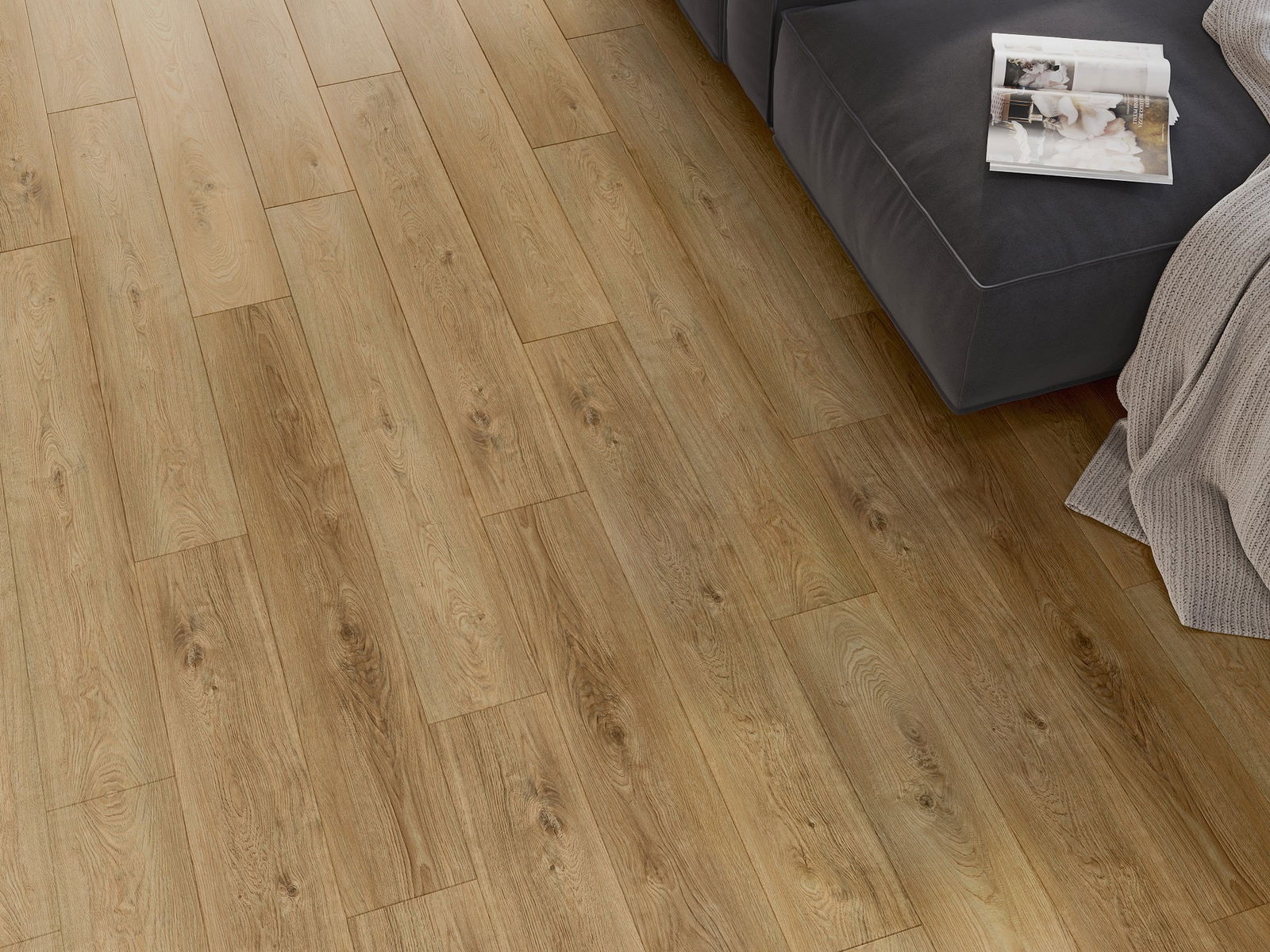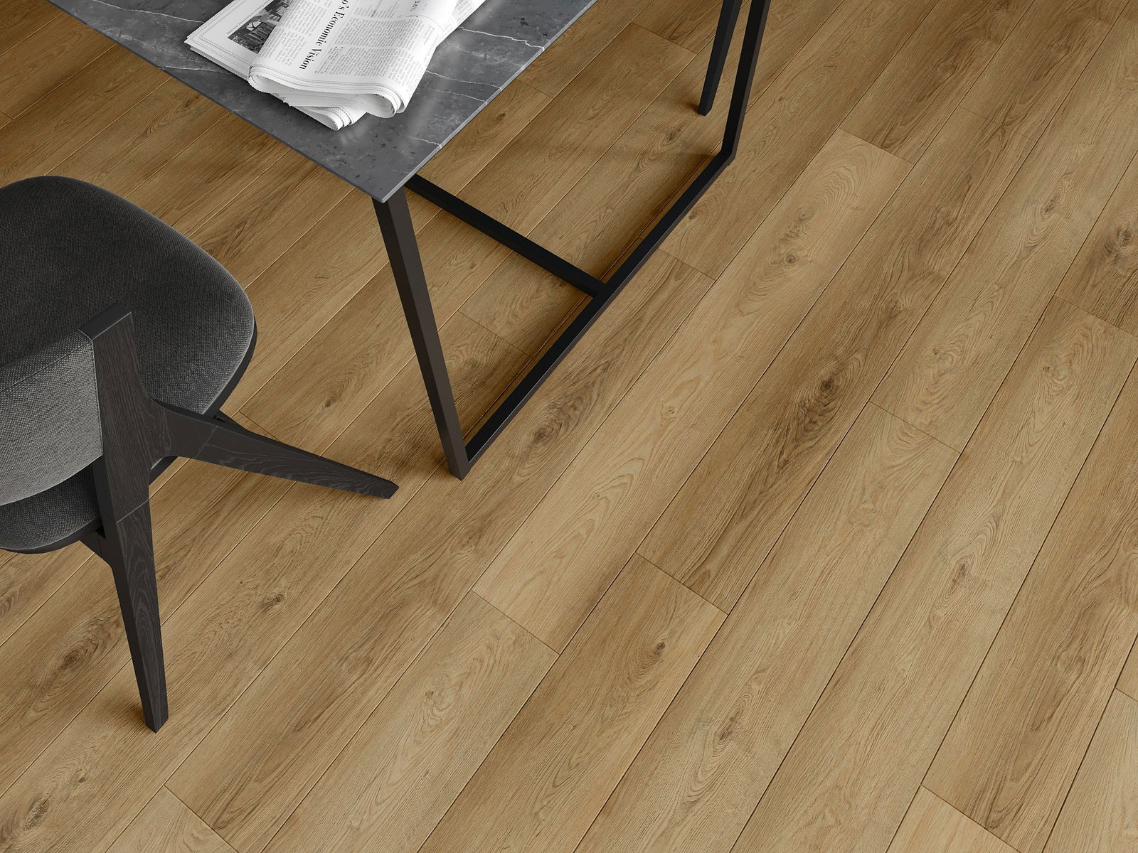 Skydas išsiskiria subtiliais raštais ir įspaudais, kurie puikiai imituoja pasirinktos medienos rūšį. Dėl šio efekto patalpa įgyja elegantišką, o tuo pačiu natūralų ir jaukų pobūdį.