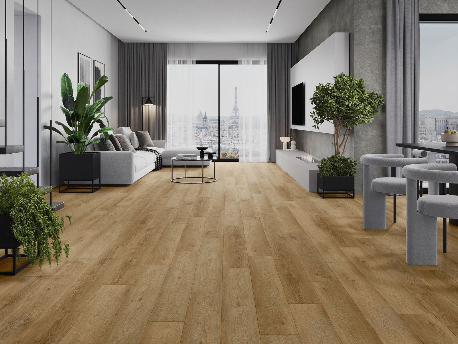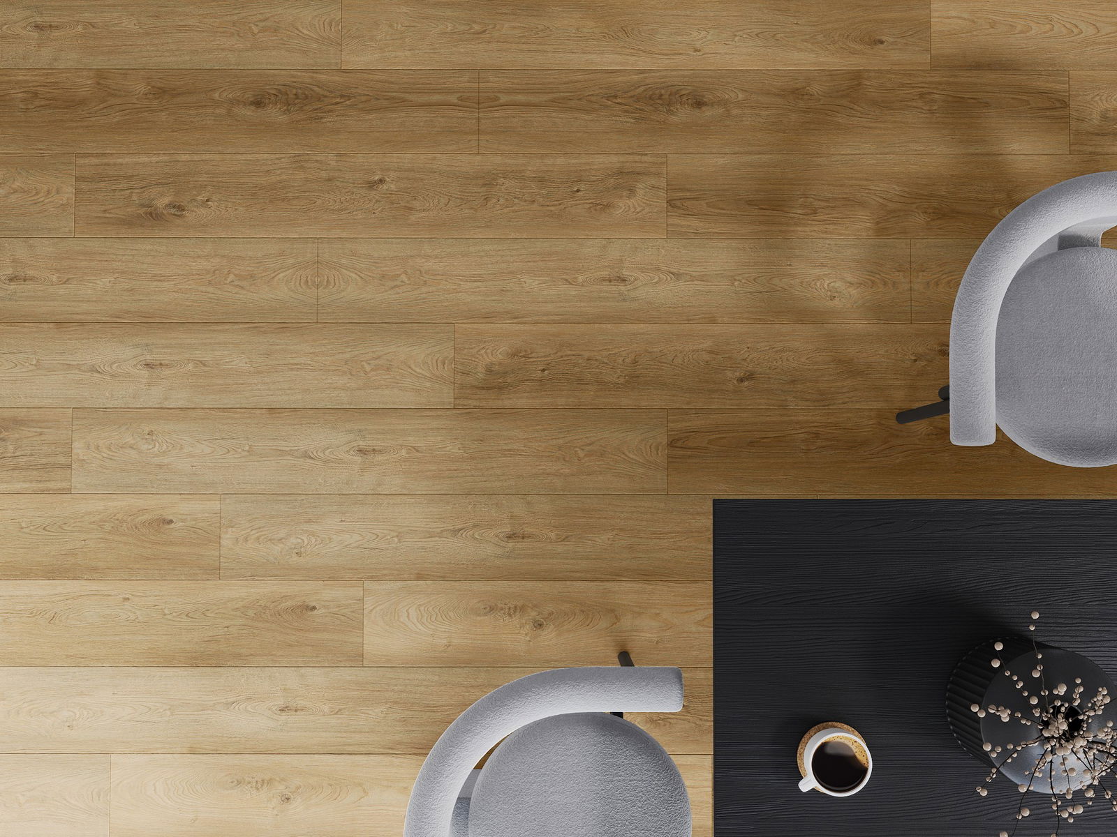 Plokštės turi 4-krypčių griovelį - kiekviena pusė buvo frezuota taip, kad sudarytų V formos jungtį. Toks dizainas suteikia grindims ryškesnę struktūrą, kas suteikia jai gylio ir estetinį charakterį. Šis efektas ypač vertinamas šiuolaikinėse aranžuotėse, kur detalės pabrėžia išskirtinę interjero išvaizdą.