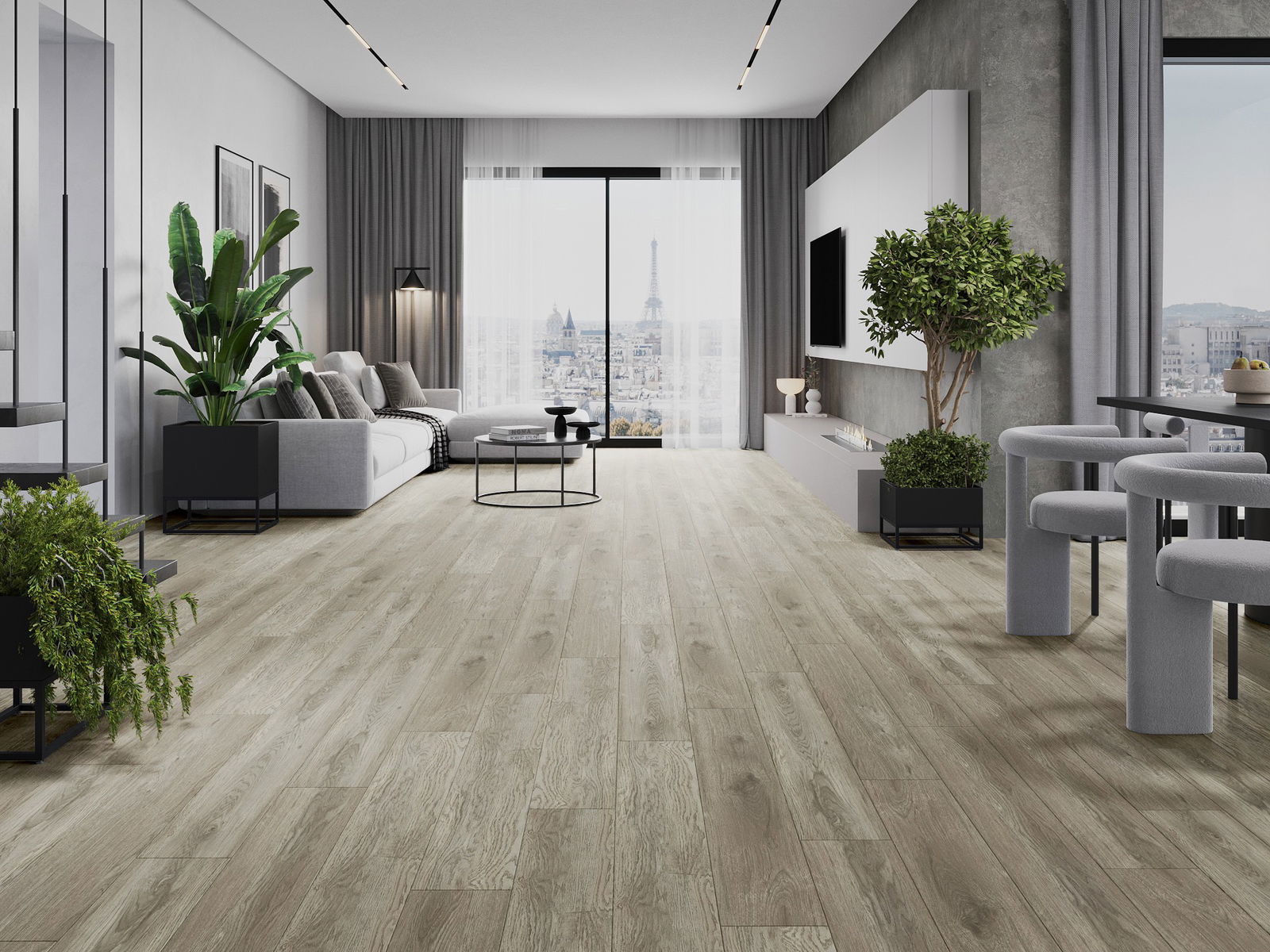 Skydas išsiskiria subtiliais raštais ir įspaudais, kurie puikiai imituoja pasirinktos medienos rūšį. Dėl šio efekto patalpa įgyja elegantišką, o tuo pačiu natūralų ir jaukų pobūdį.
