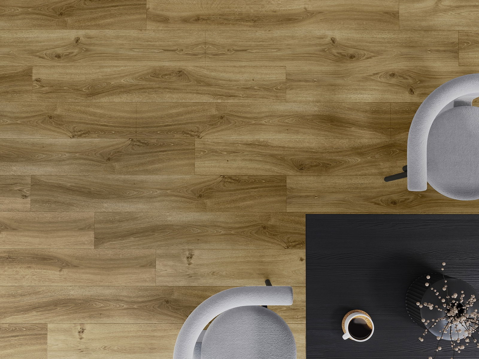 Skydas išsiskiria subtiliais raštais ir įspaudais, kurie puikiai imituoja pasirinktos medienos rūšį. Dėl šio efekto patalpa įgyja elegantišką, o tuo pačiu natūralų ir jaukų pobūdį.