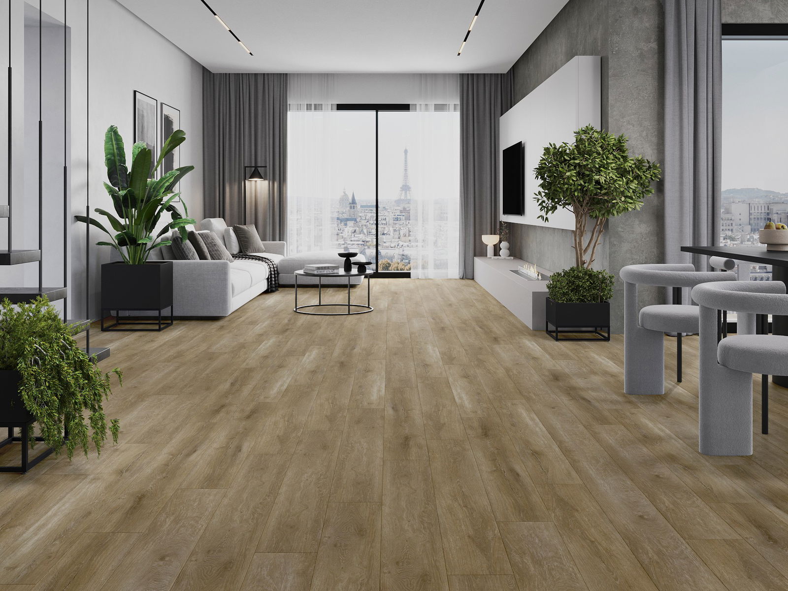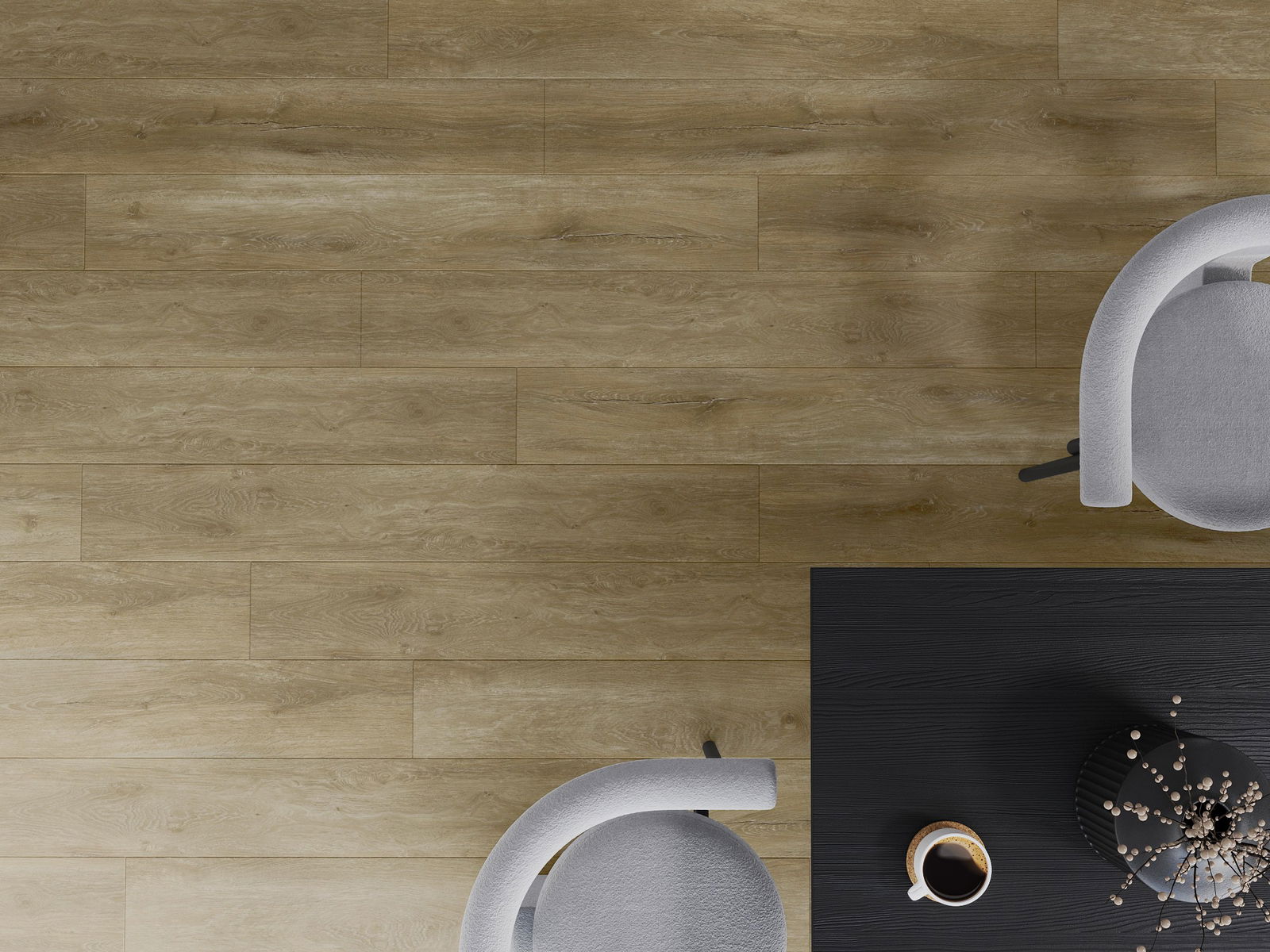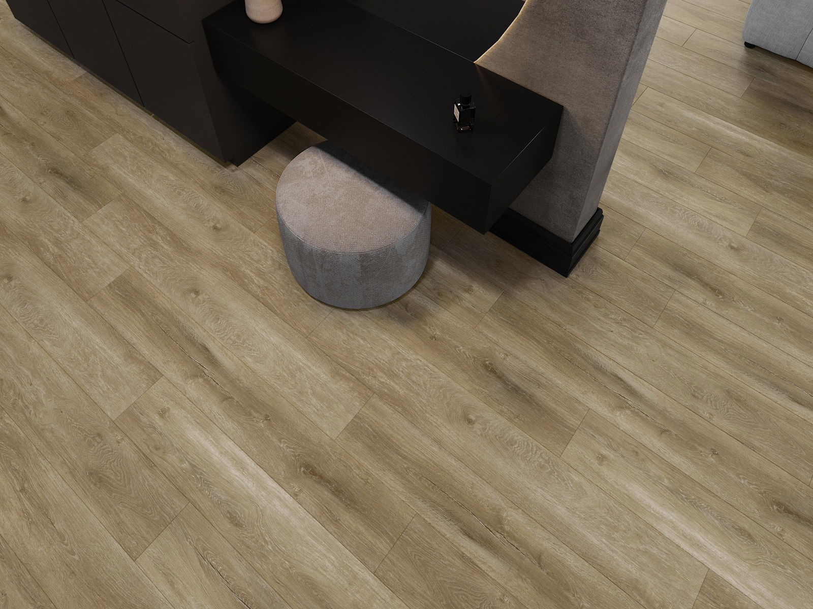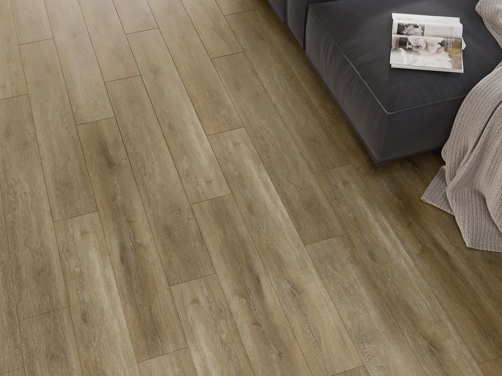 Plokštės turi 4-krypčių griovelį - kiekviena pusė buvo frezuota taip, kad sudarytų V formos jungtį. Toks dizainas suteikia grindims ryškesnę struktūrą, kas suteikia jai gylio ir estetinį charakterį. Šis efektas ypač vertinamas šiuolaikinėse aranžuotėse, kur detalės pabrėžia išskirtinę interjero išvaizdą.