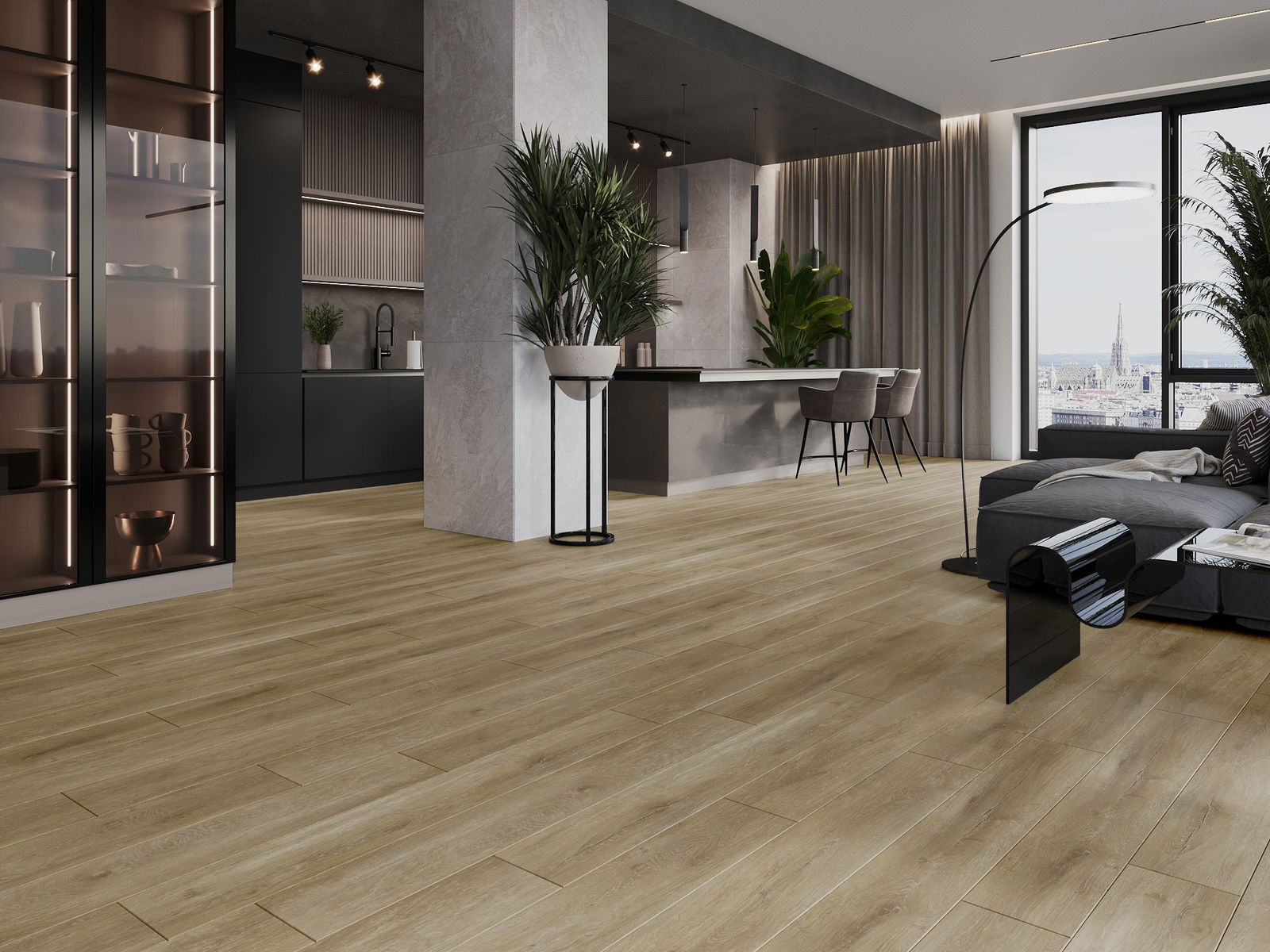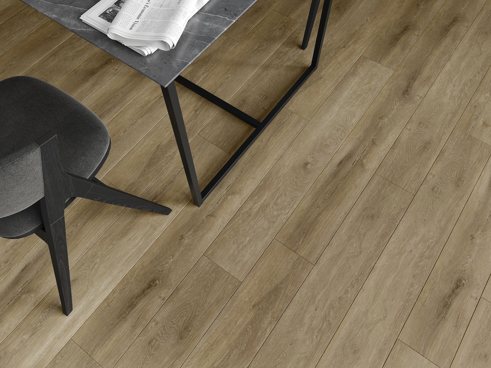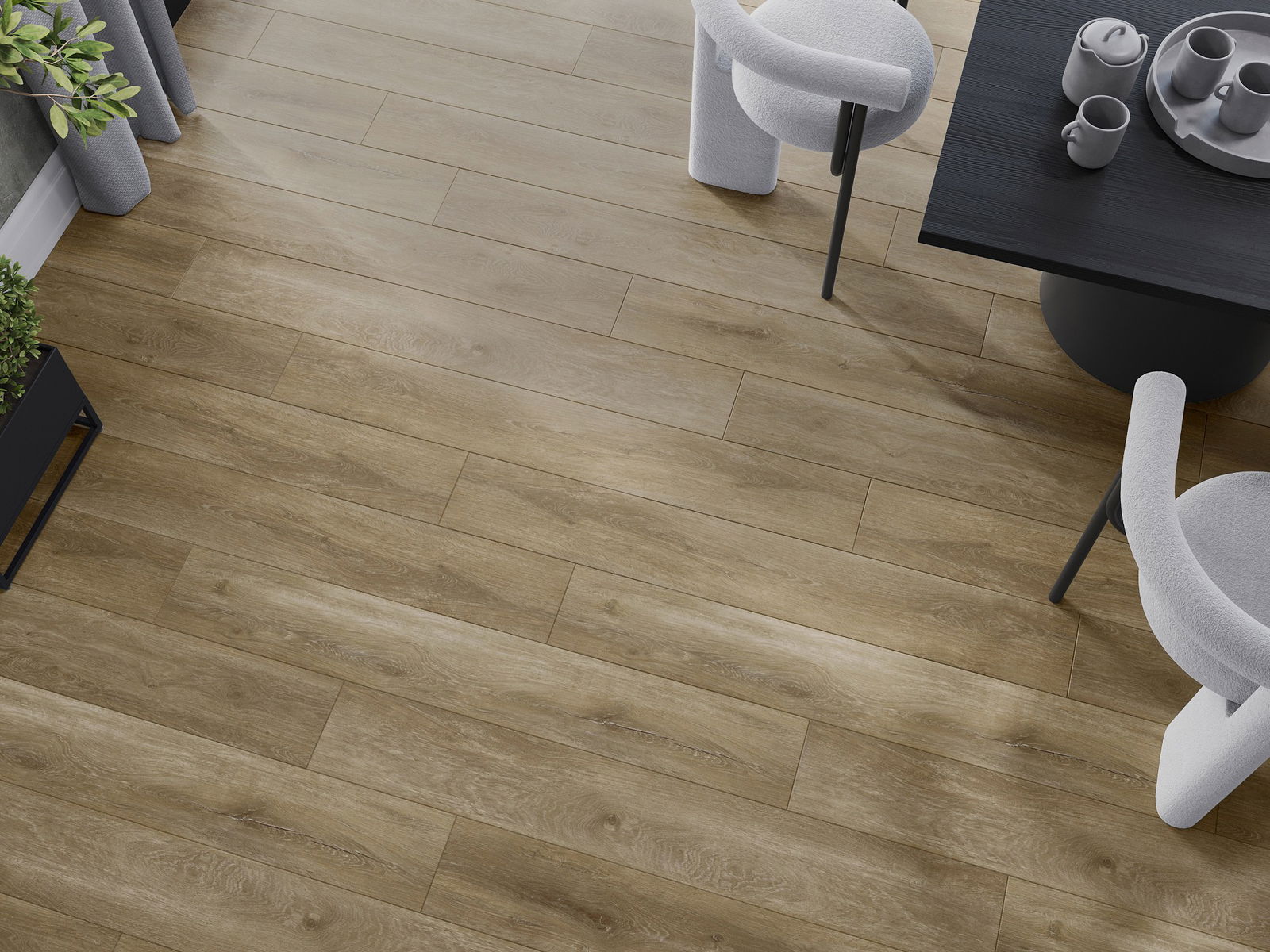 Skydas išsiskiria subtiliais raštais ir įspaudais, kurie puikiai imituoja pasirinktos medienos rūšį. Dėl šio efekto patalpa įgyja elegantišką, o tuo pačiu natūralų ir jaukų pobūdį.