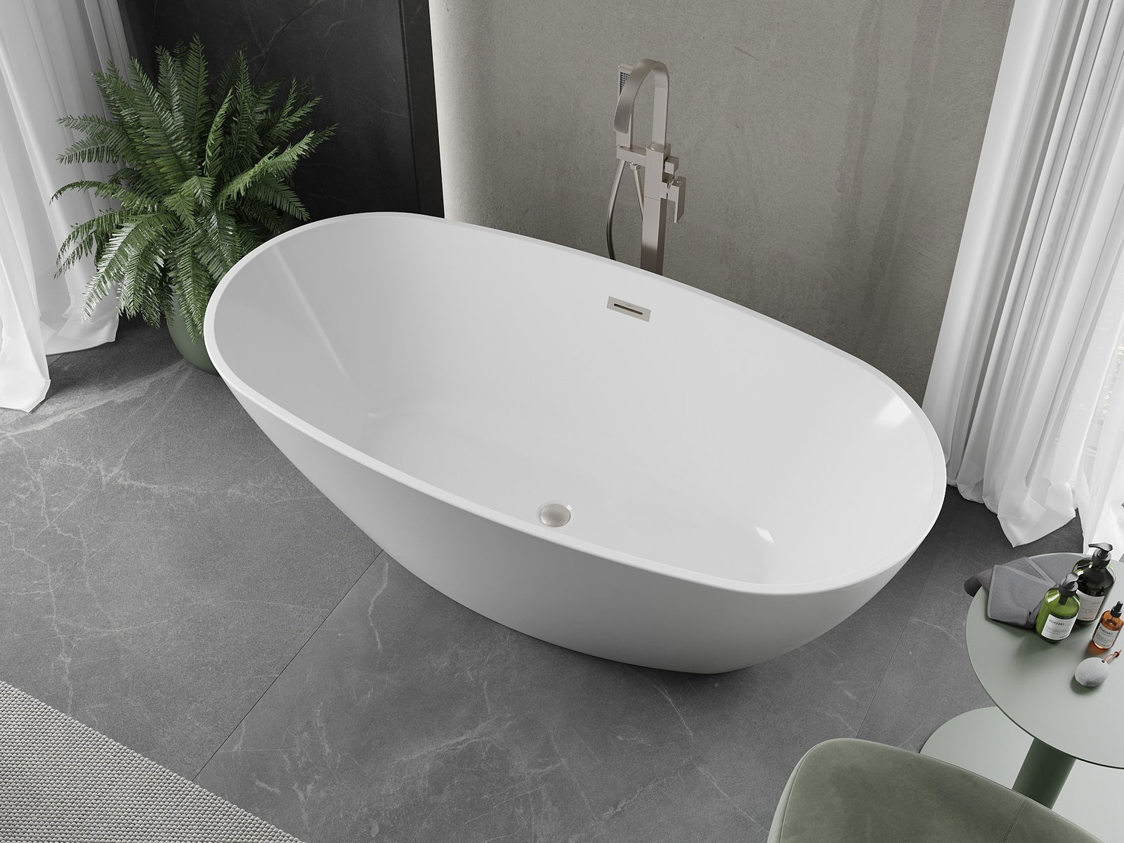 Mexen Eris laisvai pastatoma vonia 180 x 95 cm, balta, šepečiu nikeliu padengtas perpylimas - 53441809500-97