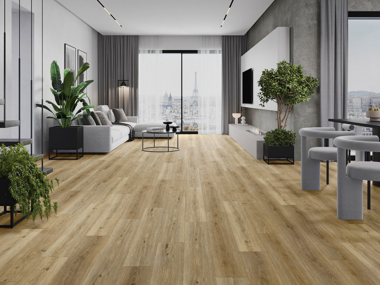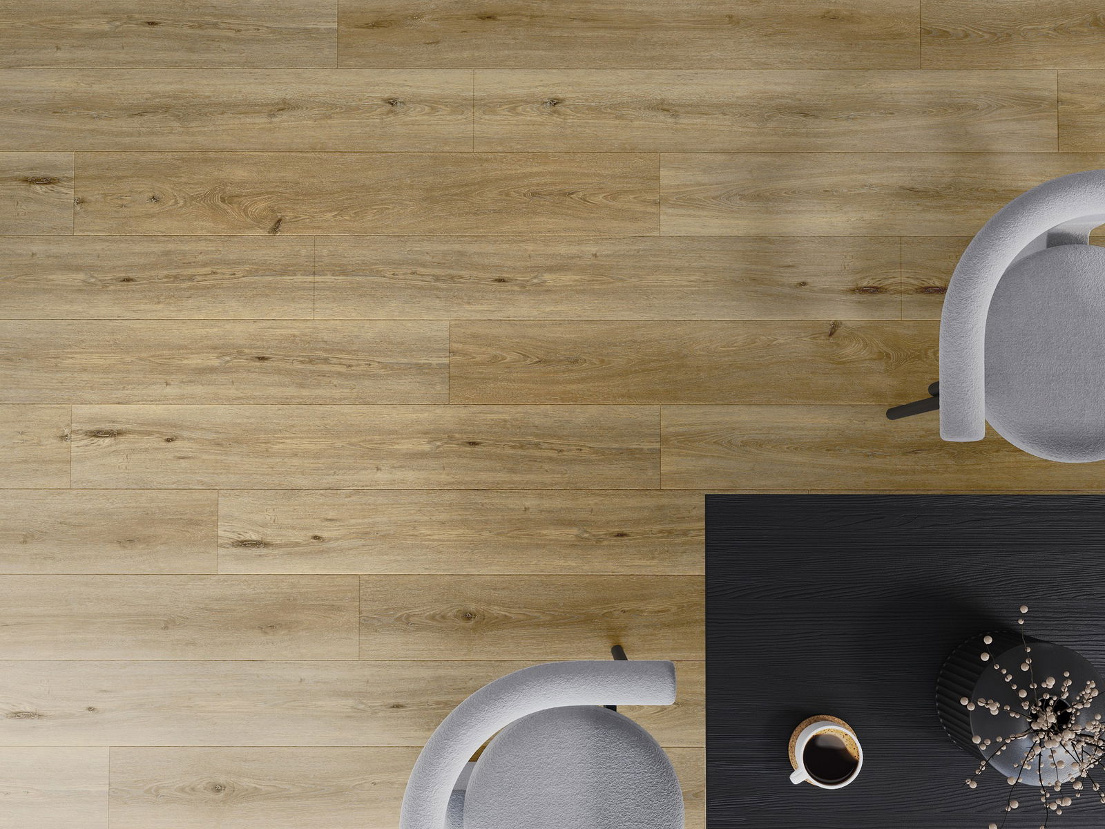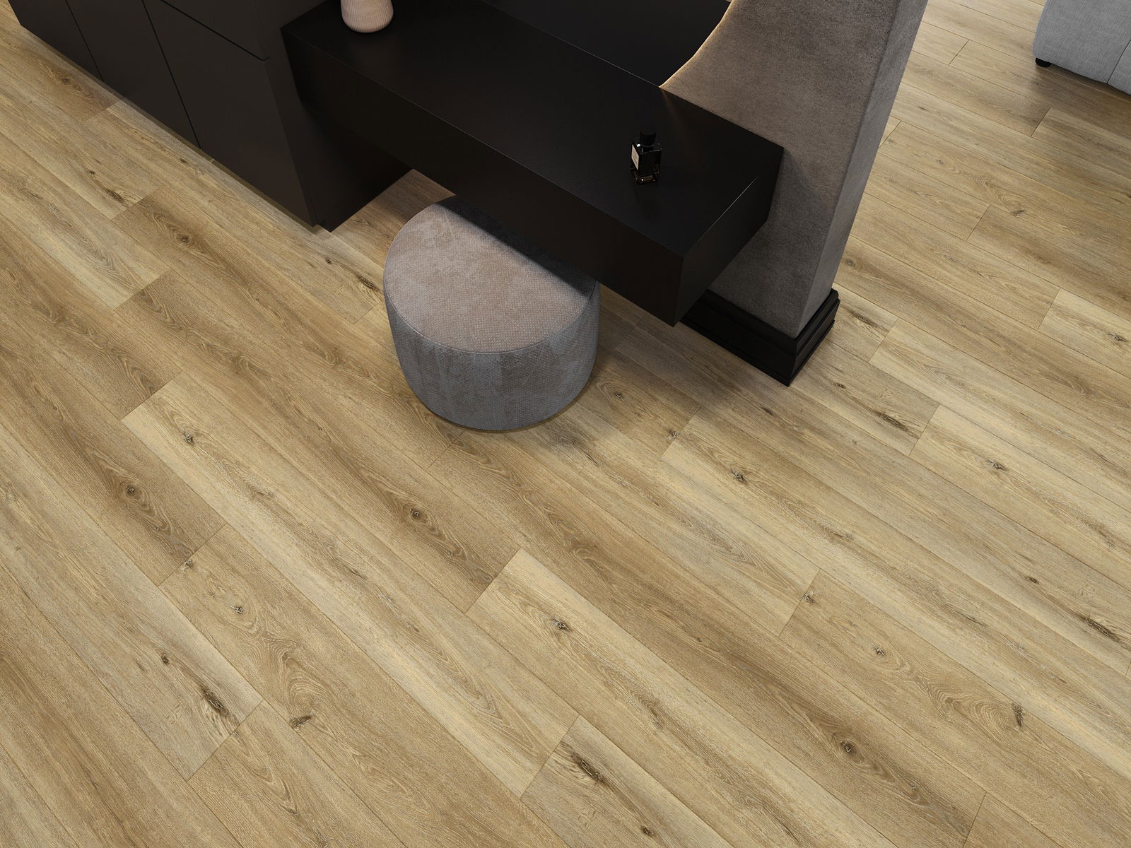 Plokštės turi 4-krypčių griovelį - kiekviena pusė buvo frezuota taip, kad sudarytų V formos jungtį. Toks dizainas suteikia grindims ryškesnę struktūrą, kas suteikia jai gylio ir estetinį charakterį. Šis efektas ypač vertinamas šiuolaikinėse aranžuotėse, kur detalės pabrėžia išskirtinę interjero išvaizdą.