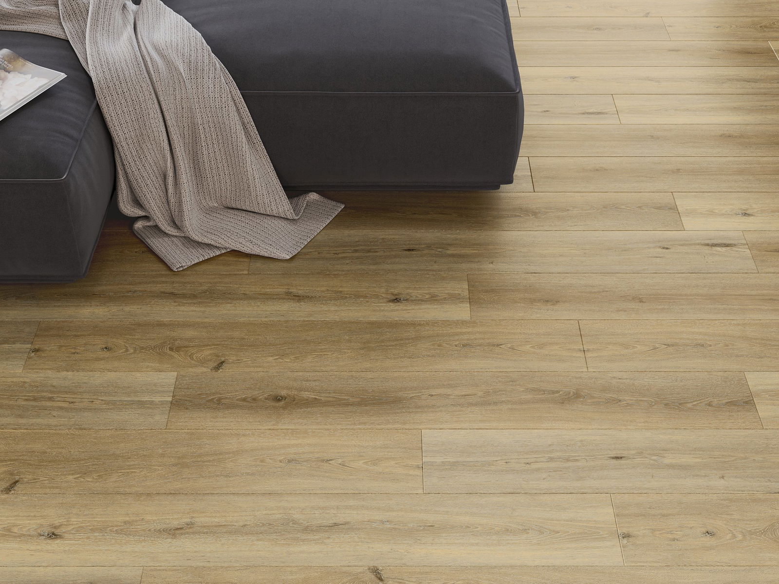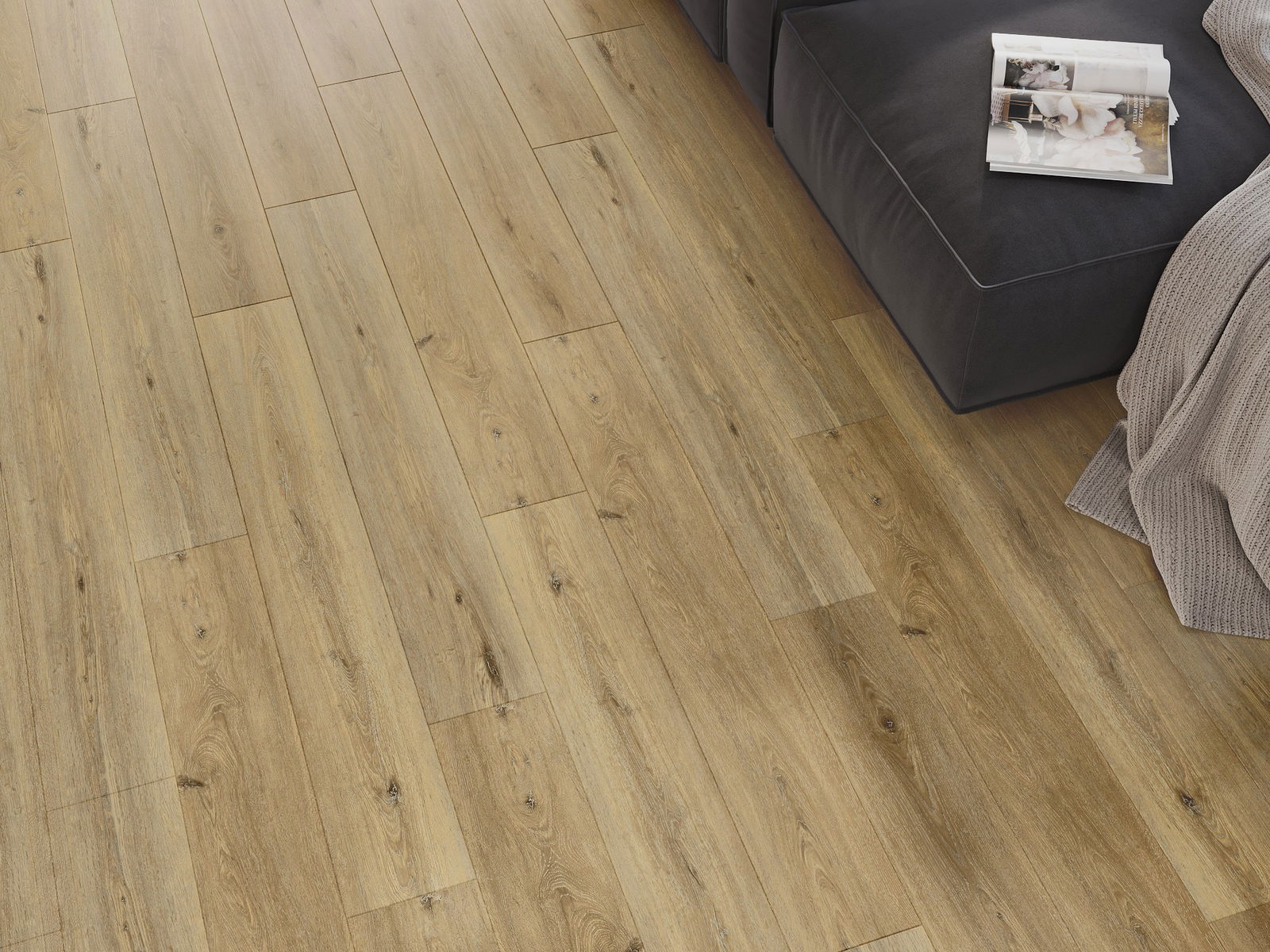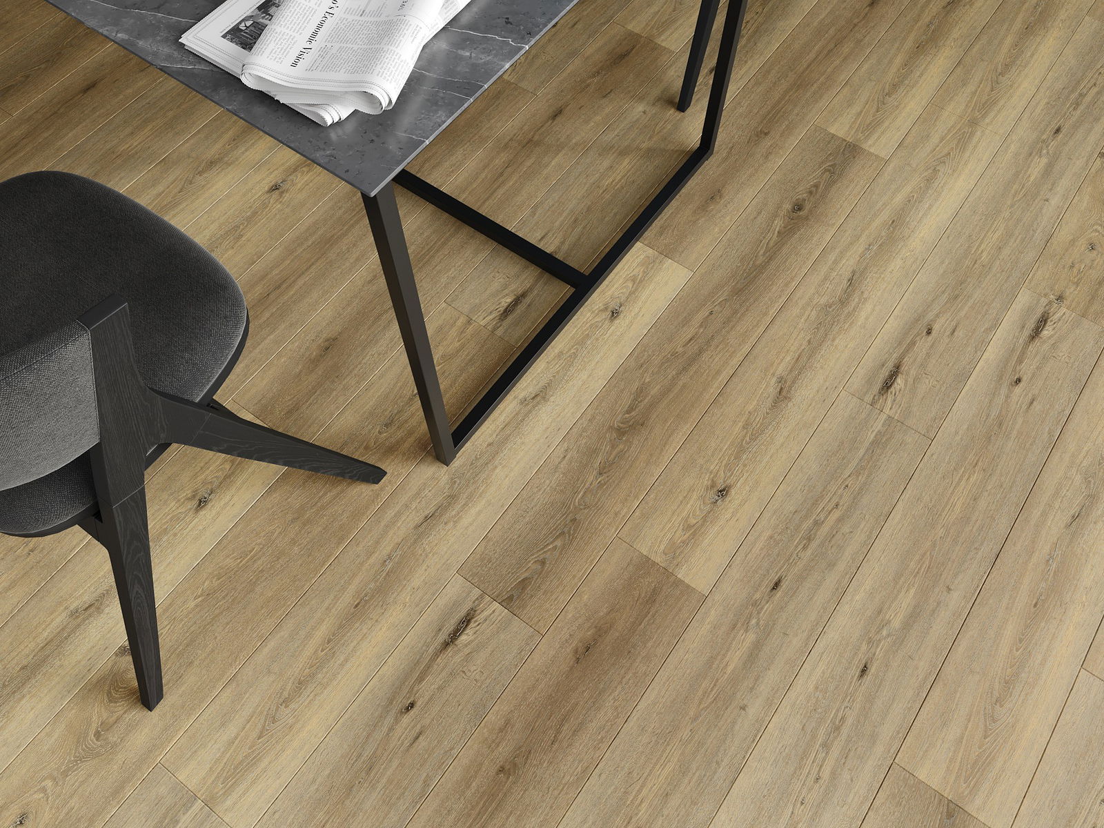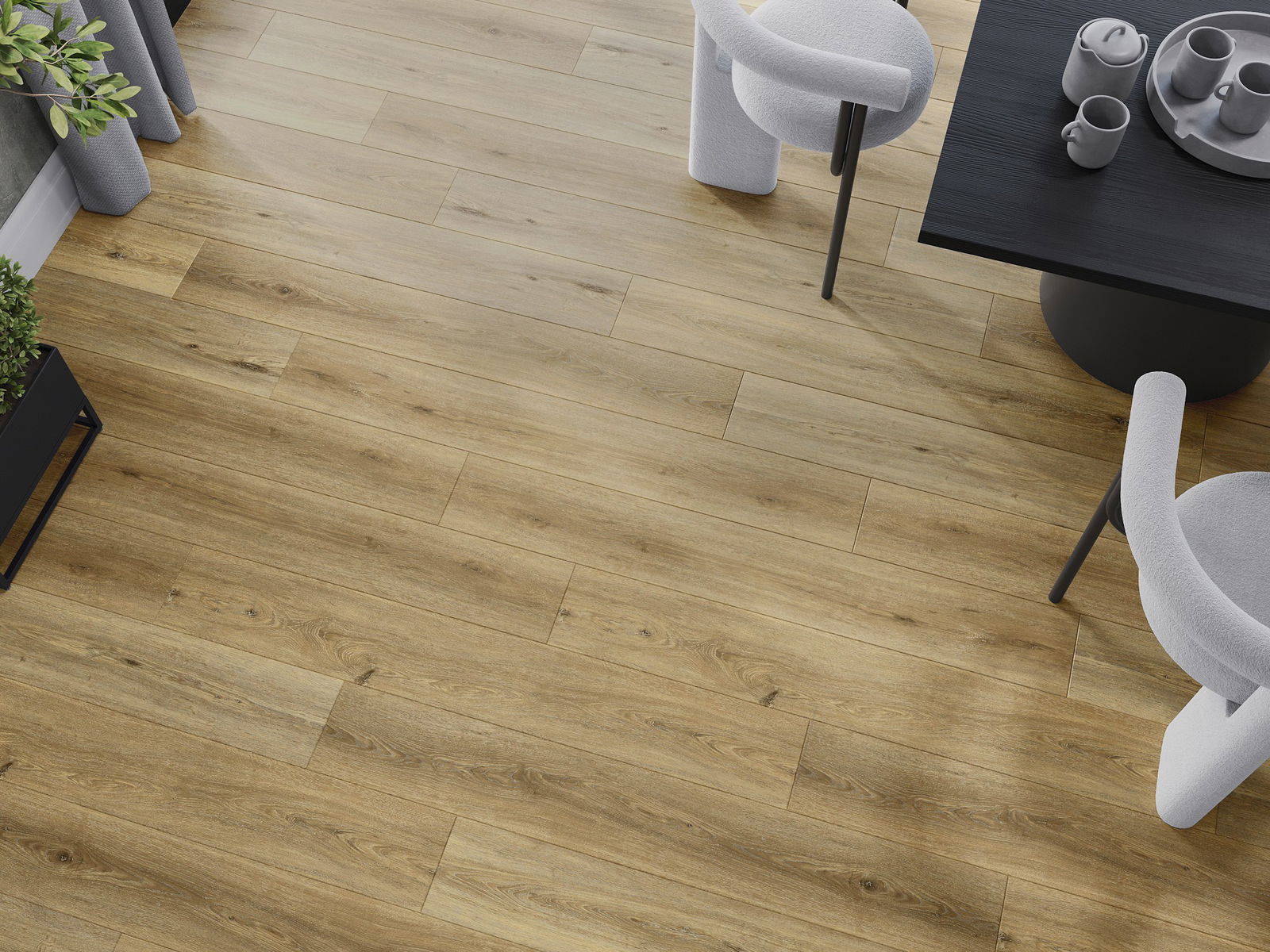 Skydas išsiskiria subtiliais raštais ir įspaudais, kurie puikiai imituoja pasirinktos medienos rūšį. Dėl šio efekto patalpa įgyja elegantišką, o tuo pačiu natūralų ir jaukų pobūdį.