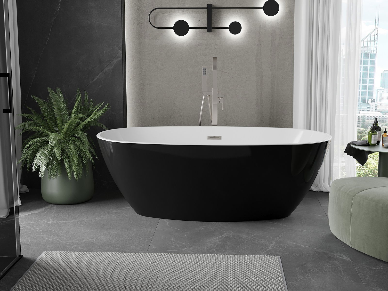 Mexen Eris laisvai stovinti vonia 180 x 95 cm, balta/juoda, perbėgimas šlifuotas nikelis - 53441809575-97
