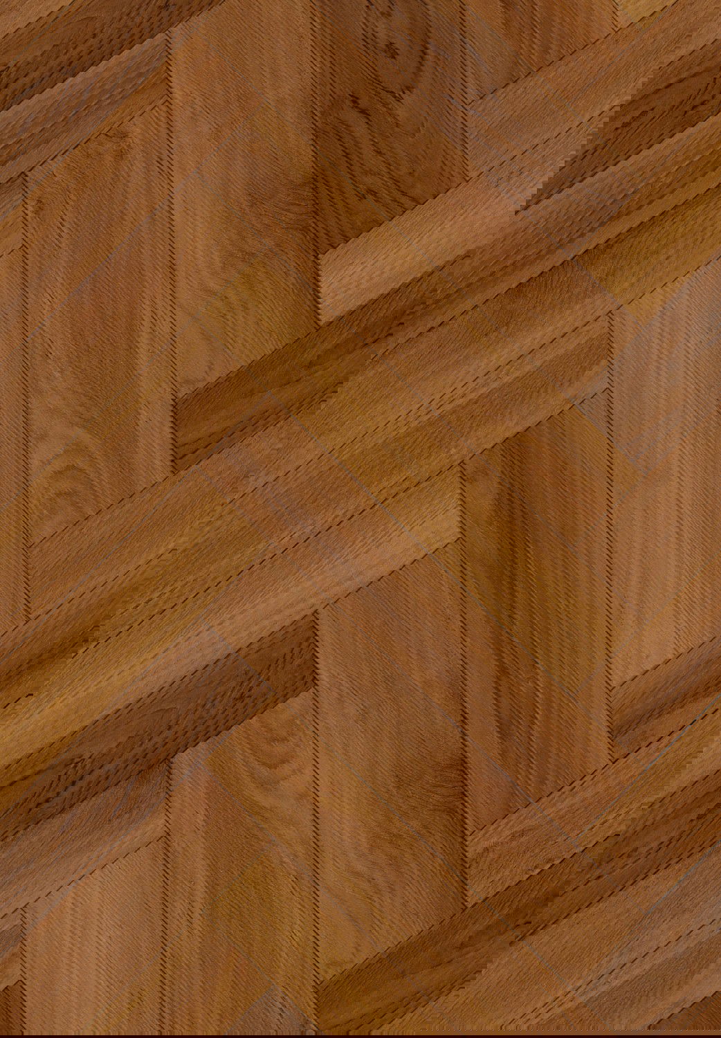 Pavyzdys yra tik dalis panelio ir neatspindi viso grindų rašto, raštas yra išdėstytas per kelis panelius
