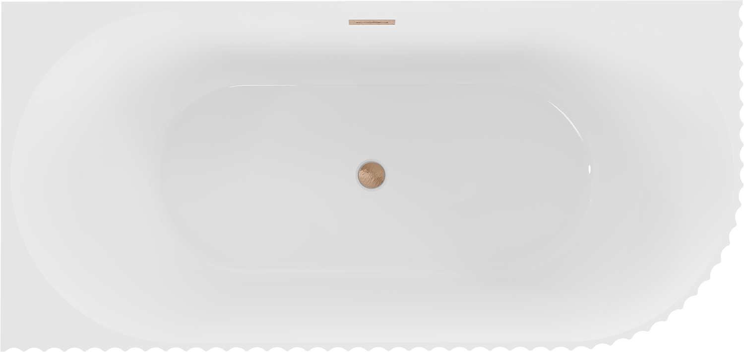 Mexen Gia laisvai stovinti kampinė su grioveliais kairė vonia, 150 x 75 cm, balta blizgi, ištekėjimas šukuotas varis