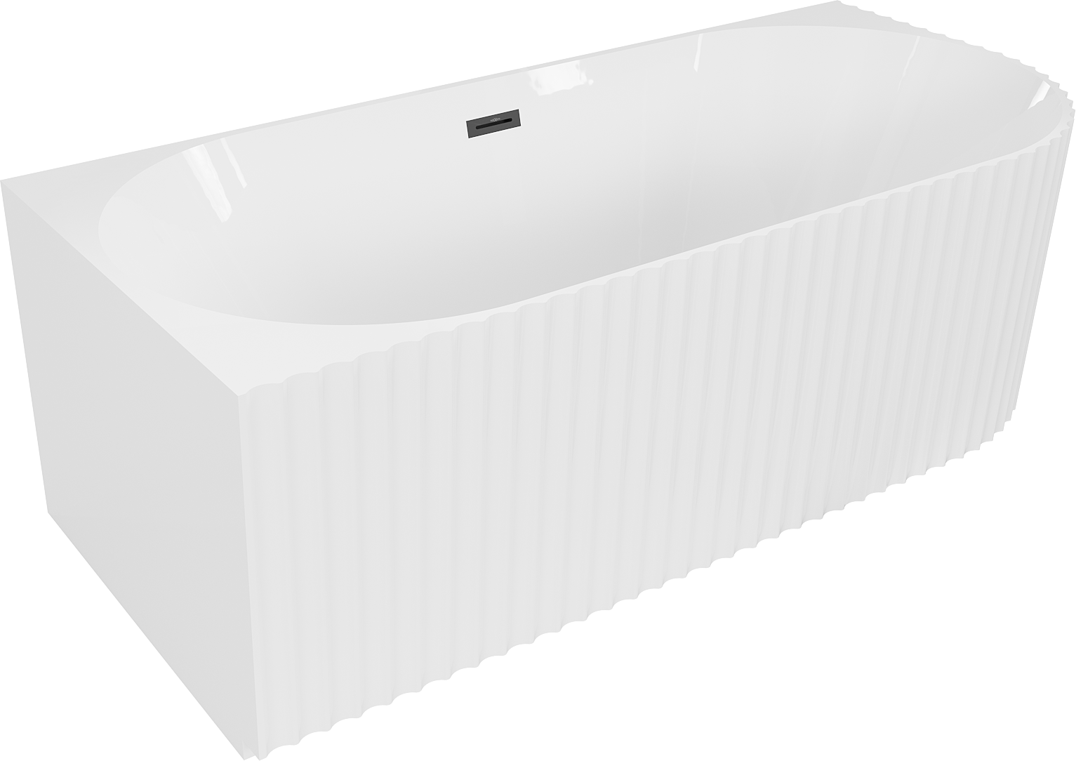 Mexen Gia laisvai pastatoma kampinė rifliuota vonia kairė 150 x 75 cm, balta blizgi, juodas perpylimas - 52701507500L-70