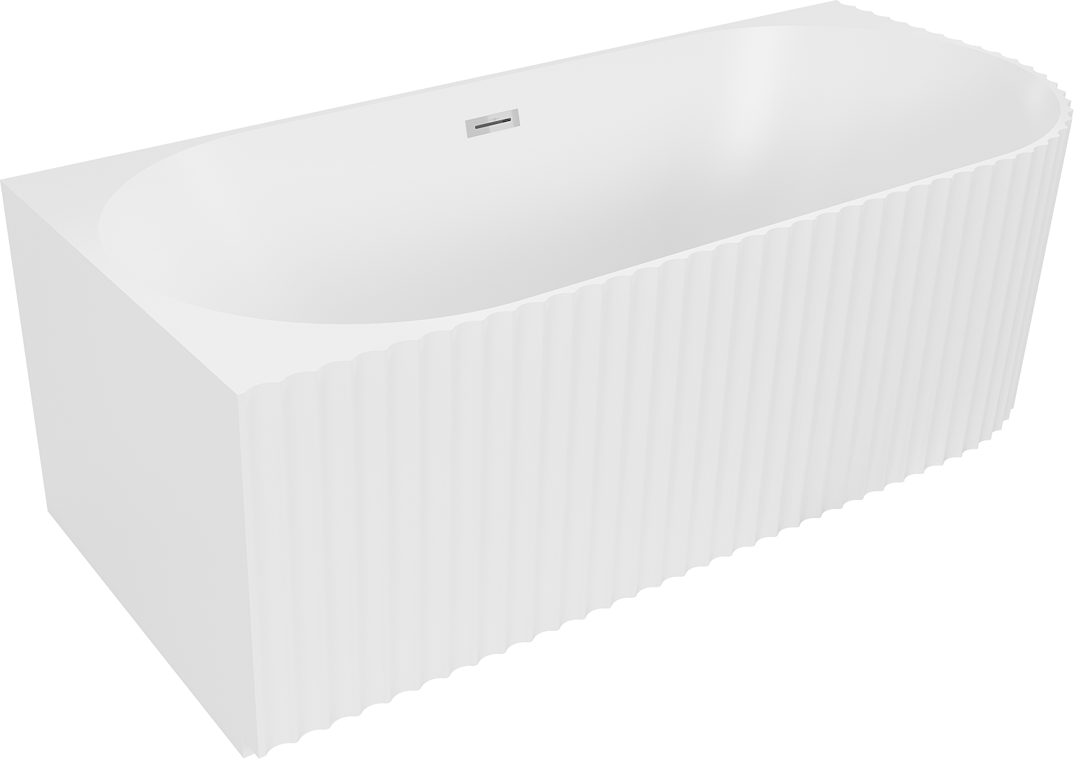 Mexen Gia laisvai pastatoma kampinė rifliuota vonia kairinė 150 x 75 cm, balta mat, chromuotas persipylimas - 52701507501L-01
