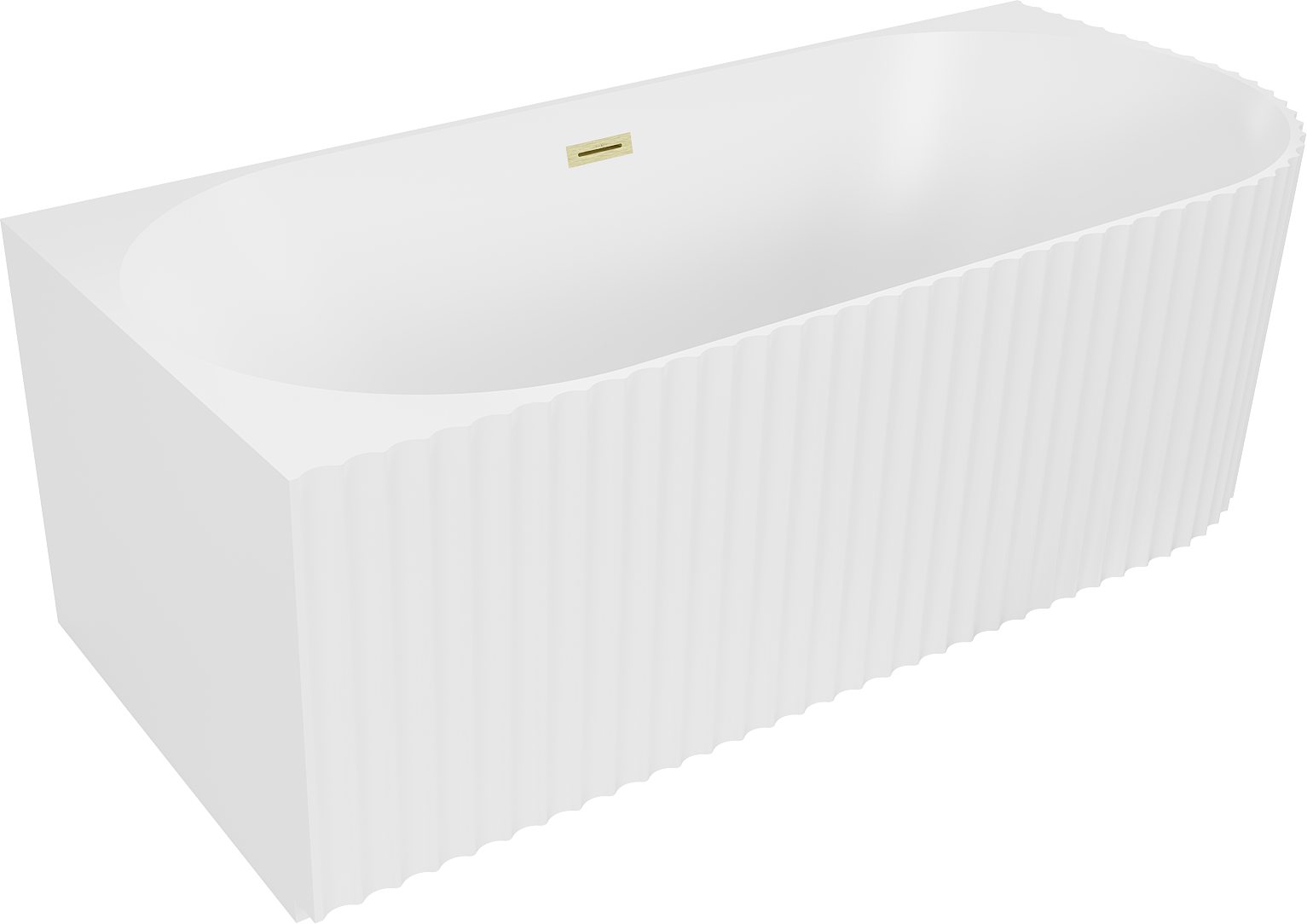 Mexen Gia laisvai pastatoma kampinė vonia su grioveliais kairė 150 x 75 cm, balta matinė, auksinis šlifuotas perpylimas
