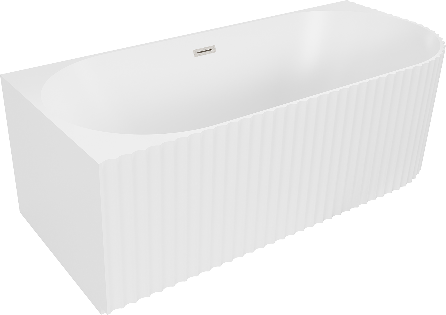 Mexen Gia laisvai pastatoma kampinė rifliuota vonia kairinė 150 x 75 cm, balta matinė, šepetėlis nikeliuotas perpylimas