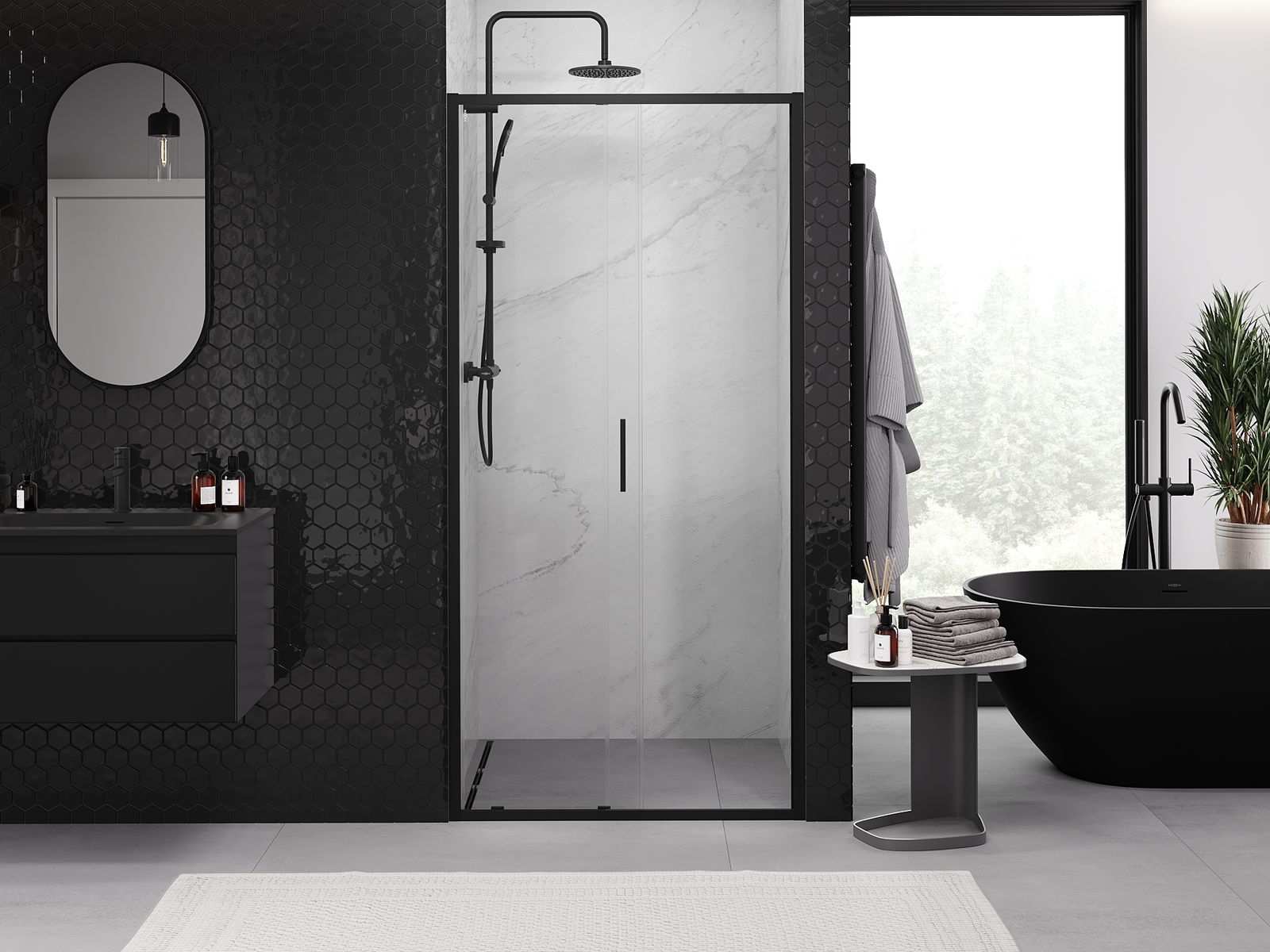 Mexen Exo slankiojančios dušo durys 90 cm, skaidrios, juodos - 8151-090-000-70-00