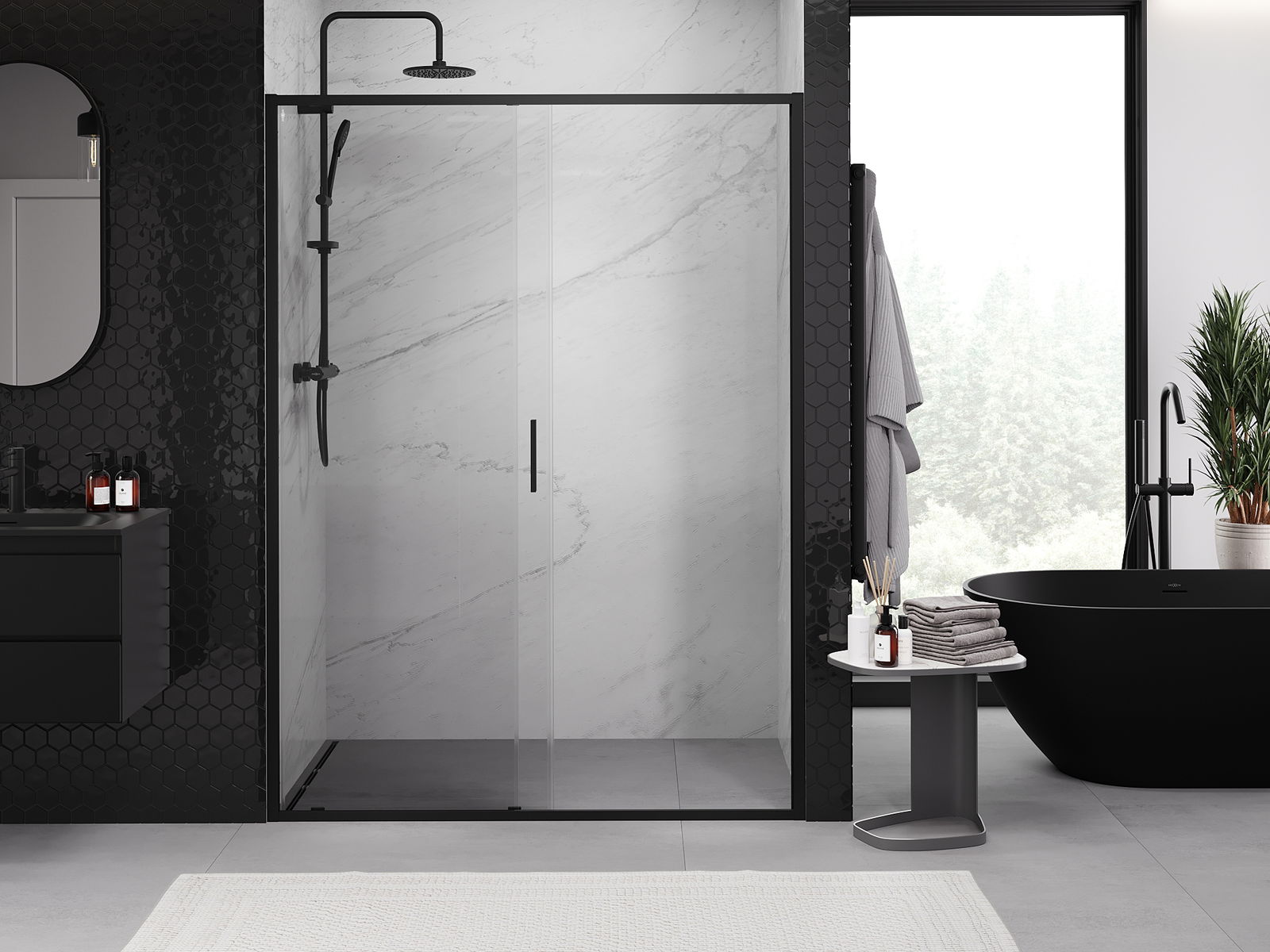 Mexen Exo stumdomos dušo durys 135 cm, permatomos, juodos - 8151-135-000-70-00