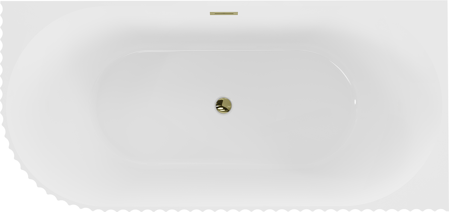 Mexen Gia laisvai stovinti rifliuota dešinė pusapvalė vonia 150 x 75 cm, balta blizganti, auksinė persipylimo danga