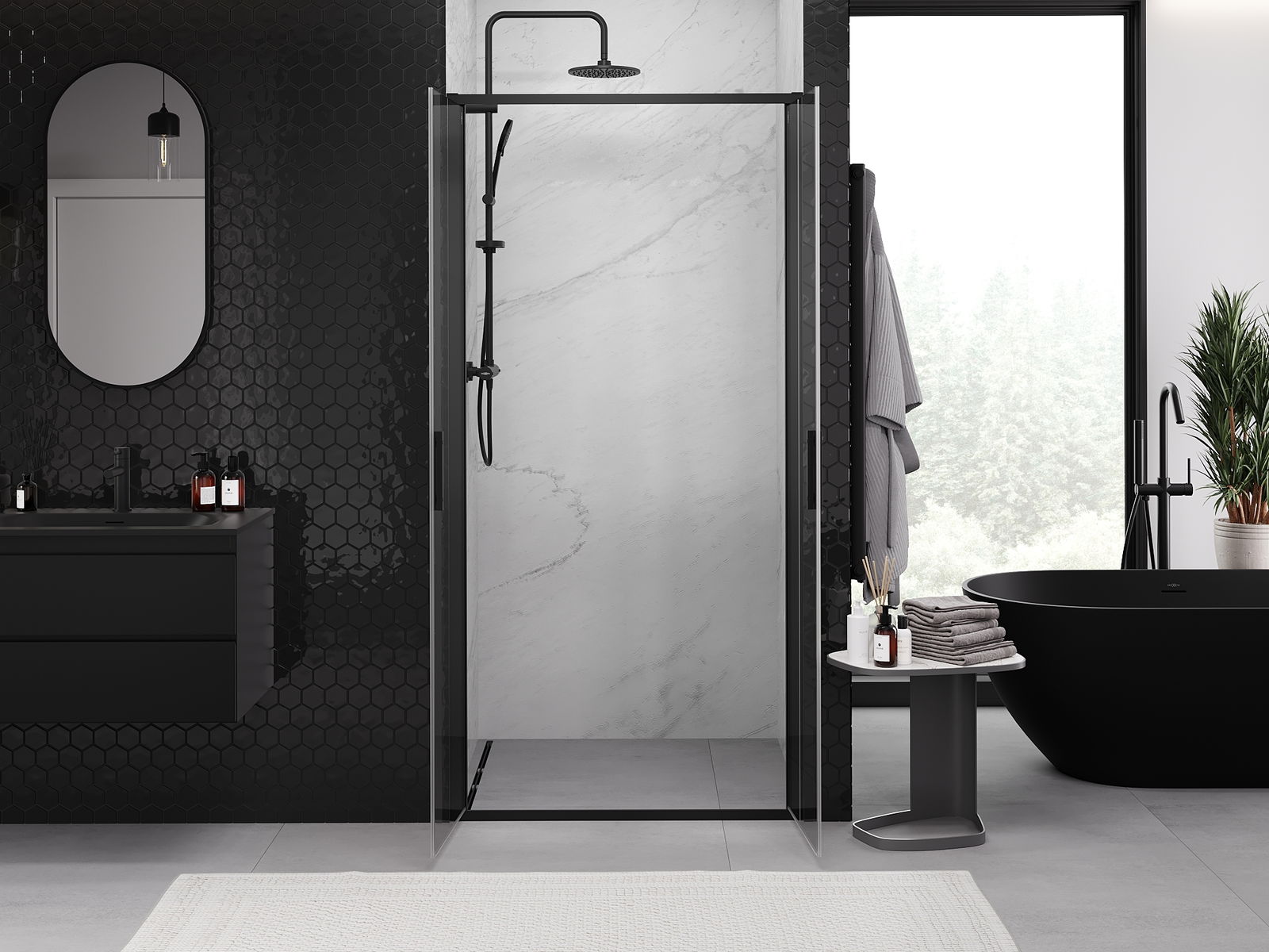 Mexen Exo dvigubos varstomos dušo durys 100 cm, skaidrios, juodos - 814-100-000-70-00
